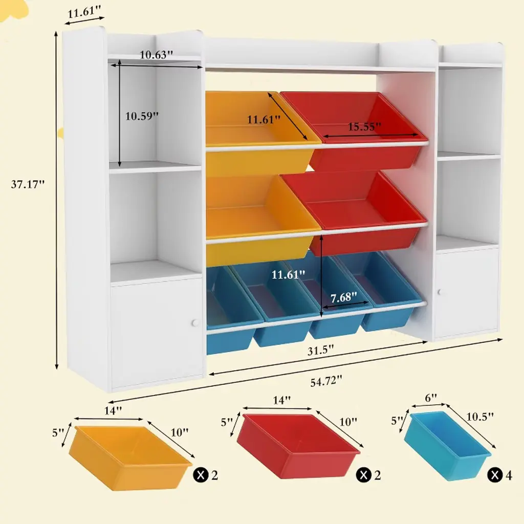 The kids storage organizer is made of high-quality engineering board to ensure stability and durability. Unlike cubby toy storage, they won’t have to through the closed bins to find their toys. Books scattered on the floor can be neatly grouped on the shelves.Whether placed in a bedroom, living room, play area, or nursery, the toy storage organizer's modern yet functional design complements your existing furniture while providing smart storage solutions that grow with your child.