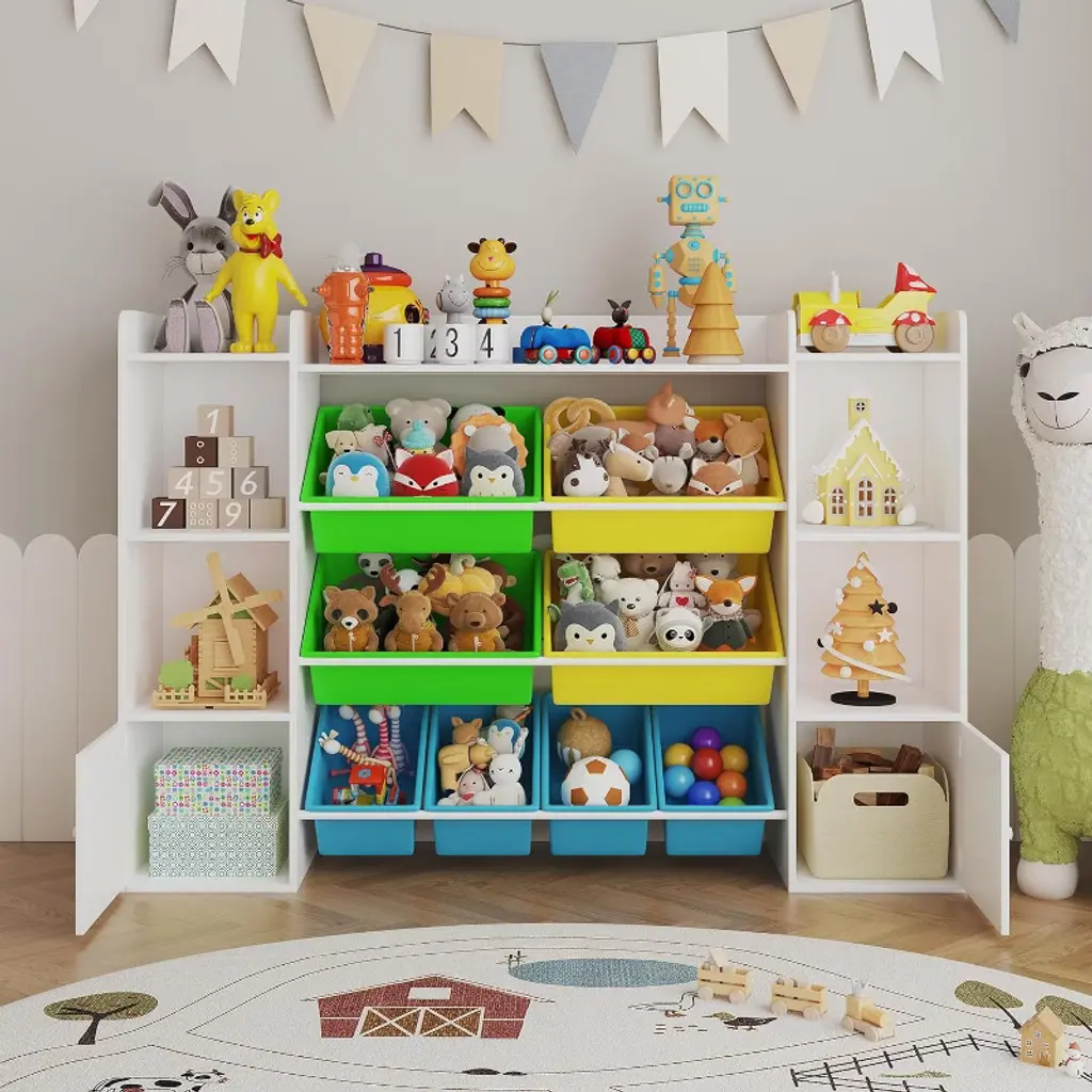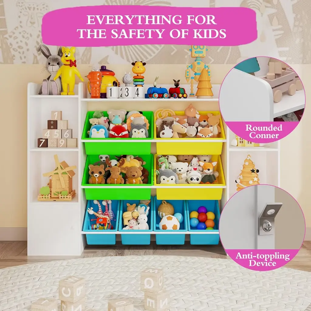 Feature:This kids toy storage organizer combines practicality with child-friendly design. Featuring 8 removable toy bins and 2 storage cubbies with bookshelf space, it keeps toys, books, puzzles, and games neatly organized. Durable construction and rounded edges ensure safety and long-lasting use in playrooms, bedrooms, kids rooms, or classrooms.Package Included:1 × Kids Toy Storage Organizer with 8 Removable Bins and 2 Storage Cubbies