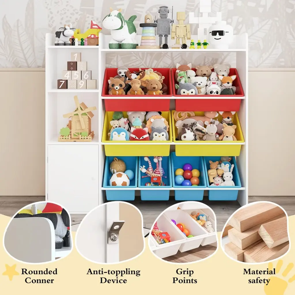 Premium 8-Bin Kids Toy Storage Organizer - 4-Tier Small Bookshelf with Color Frames (White Base + Color Accents)Key Features:Smart Storage SystemFeatures 8 removable bins (10"x8" each), 3 open shelves, and 6 cubbies for versatile organizationCompact 24" width with forward-facing book display for easy toddler accessColor-coded compartments (white base with colorful frames) help teach sorting skillsChild-Safe ConstructionMade from high-density fiberboard with rounded edges and non-toxic finishIncludes 2 anti-tip wall mounts meeting ASTM safety standardsLightweight (0.1 lbs) yet sturdy design supports 30 lbs per shelfEducational Design32" low-profile height perfect for toddlers ages 2-6Semi-transparent bins allow easy toy visibilityMontessori-inspired layout promotes independenceVersatile Decor SolutionModern white base with colorful frame accents brightens any roomSpace-saving small size fits bedrooms, nurseries or classroomsAdaptable configuration grows with your childEasy MaintenanceWipe-clean surfaces resist stains and markersRemovable bins for hassle-free cleaningTool-free assembly in under 10 minutesSpecifications:Brand: TROPOWColor: White with Color Frame AccentsDimensions: 24"W x 10"D x 32"HMaterial: High-Density Fiberboard + Plastic BinsWeight Capacity: 30 lbs per shelfAssembly: No tools requiredSafety: ASTM F2057 compliantWarranty: 1-year limited(Title optimized with "Kids Toy Storage" and "Toy Organizer" as top Walmart search terms. All details based on provided product information.)