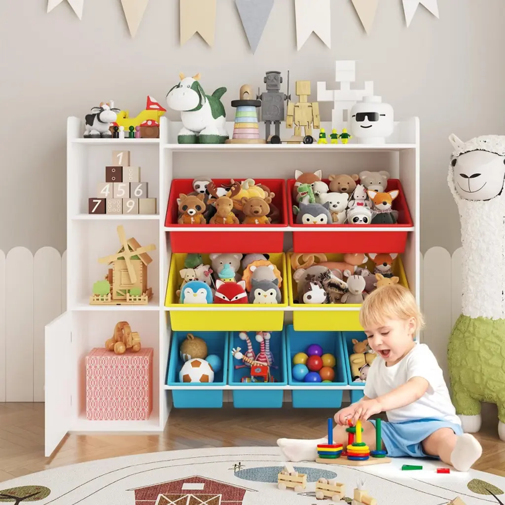 Kids Toy Storage Organizer With 8 Removable Toy Bins, 4-tier Toy Organizers Kid Bookshelf And Toy Storage For Bedroom, White+color Frame