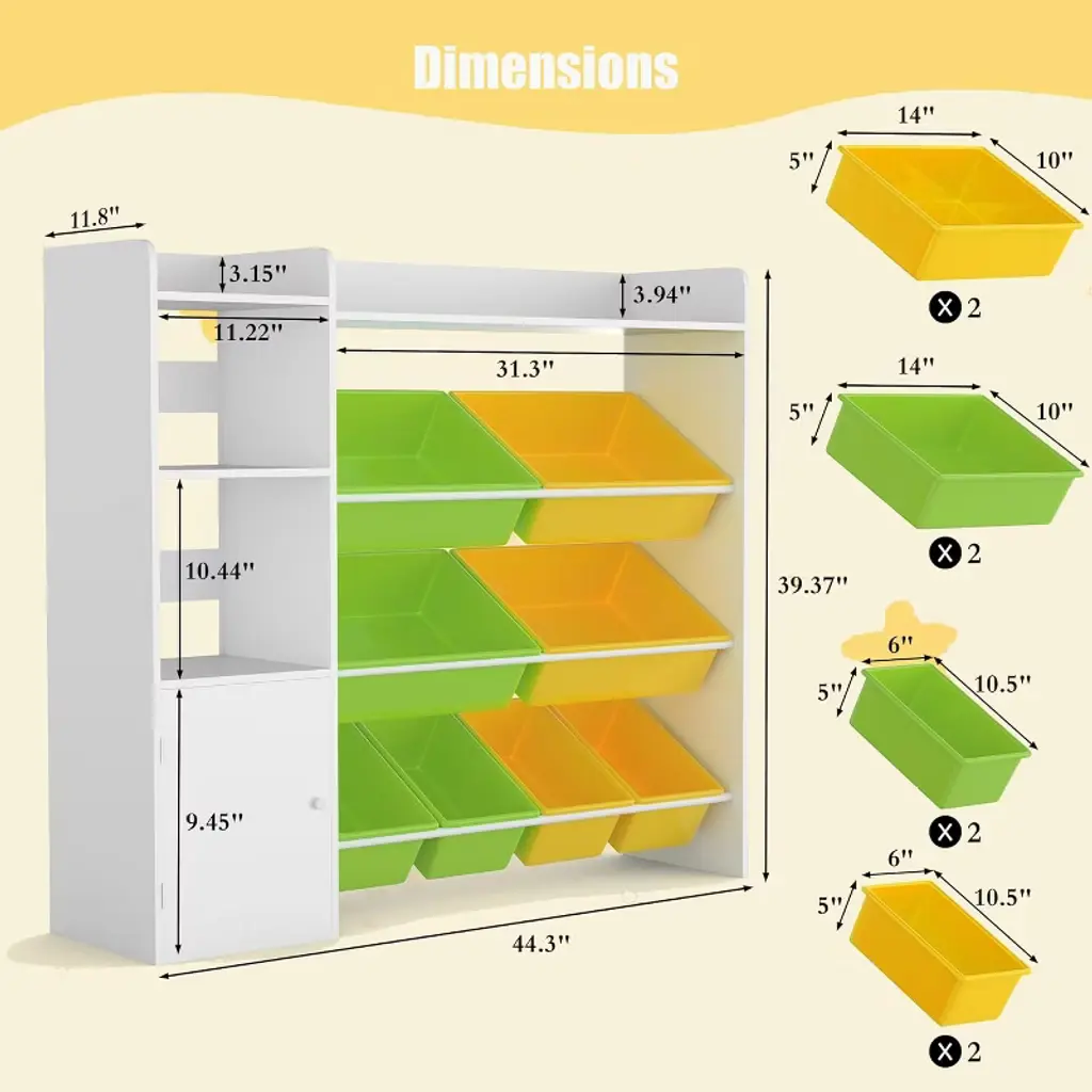 Kids Toy Storage Organizer,with 8 Colorful Removable Bins,bookshelf & Large Toy Box For Bedroom, Nursery, Classroom,study