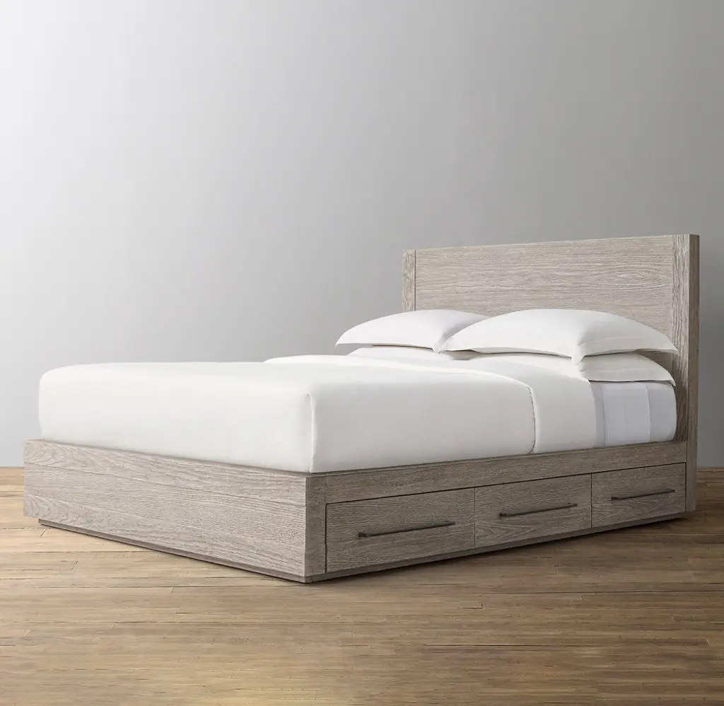 Bold in proportion yet reserved in form, our collection echoes the tailored profiles and strong shapes of International Style architecture, with its clean, modernist design and lack of ornament. The silhouette's low, horizontal lines are elevated by a plinth base and streamlined hardware. The oak has been sandblasted to further accentuate the wood's deep, drifted texture and tactile quality. SHOP THE ENTIRE COLLECTION