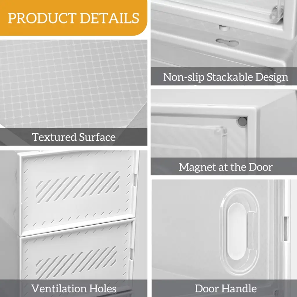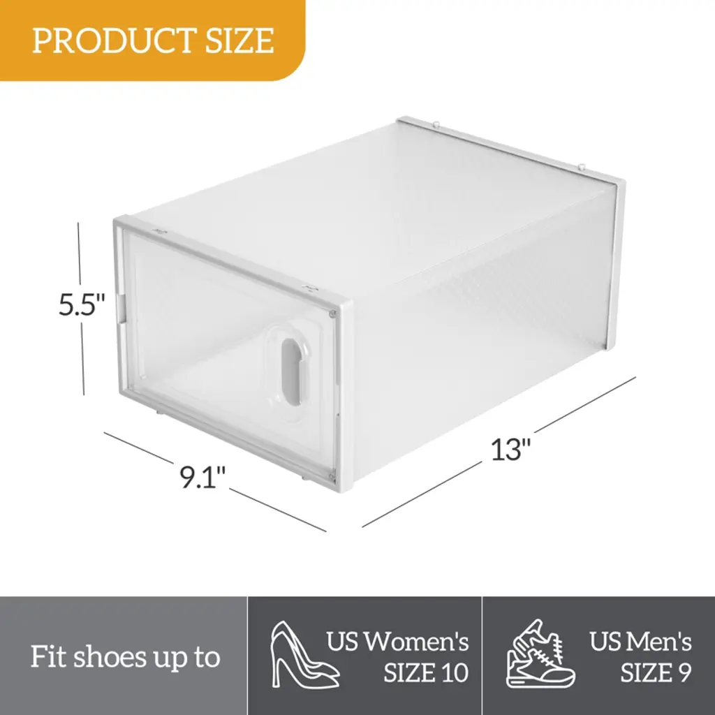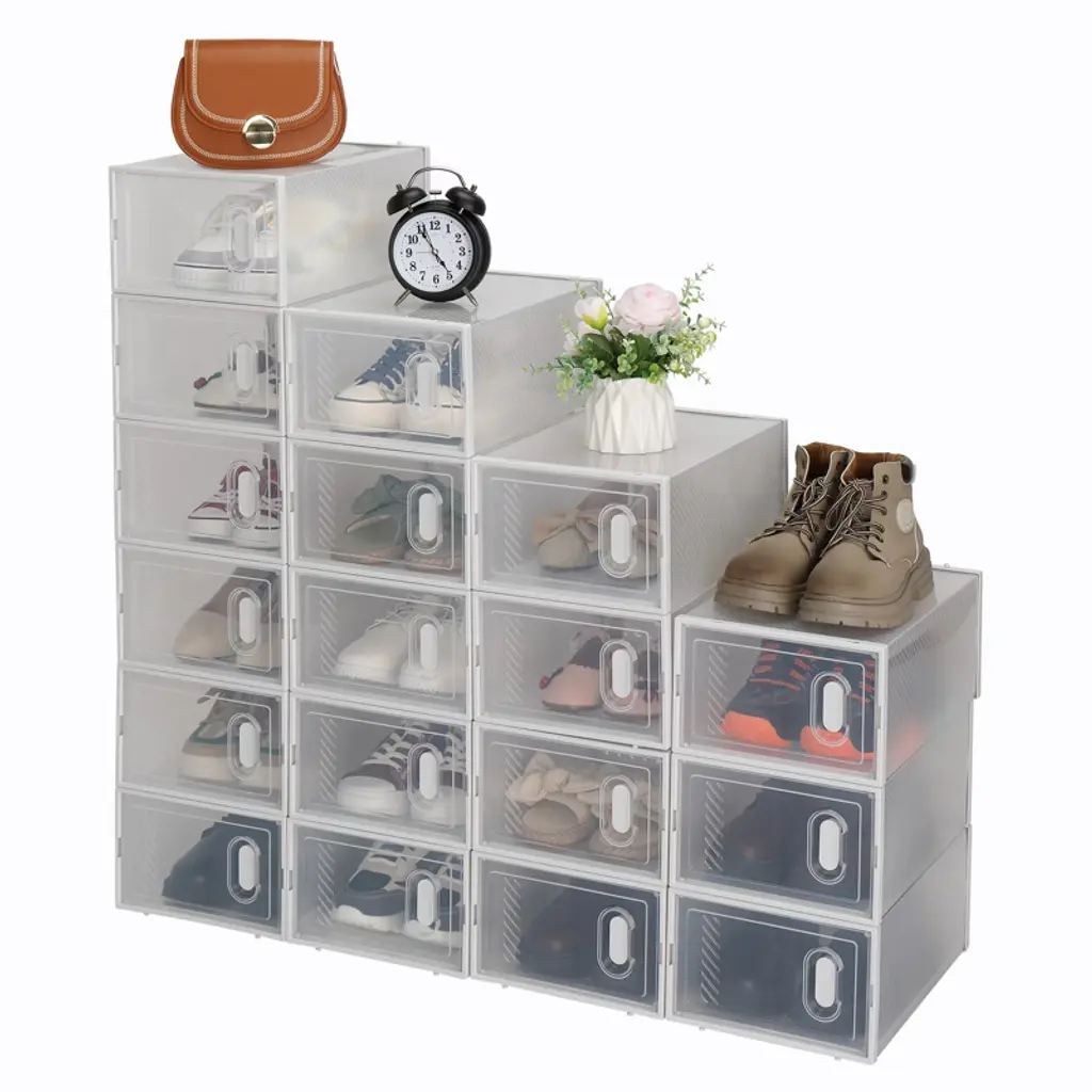 Stacking Storage Shoe Box help to simply organize closets and living areas, folding design makes each one easy to put together and folds into shape. When not in use, quickly unfolds for easy and convenient storage to save space.These stackable storage bins can be arranged to suit various spaces e.g. entryway, closet, under the bed, cabinet, drawers.