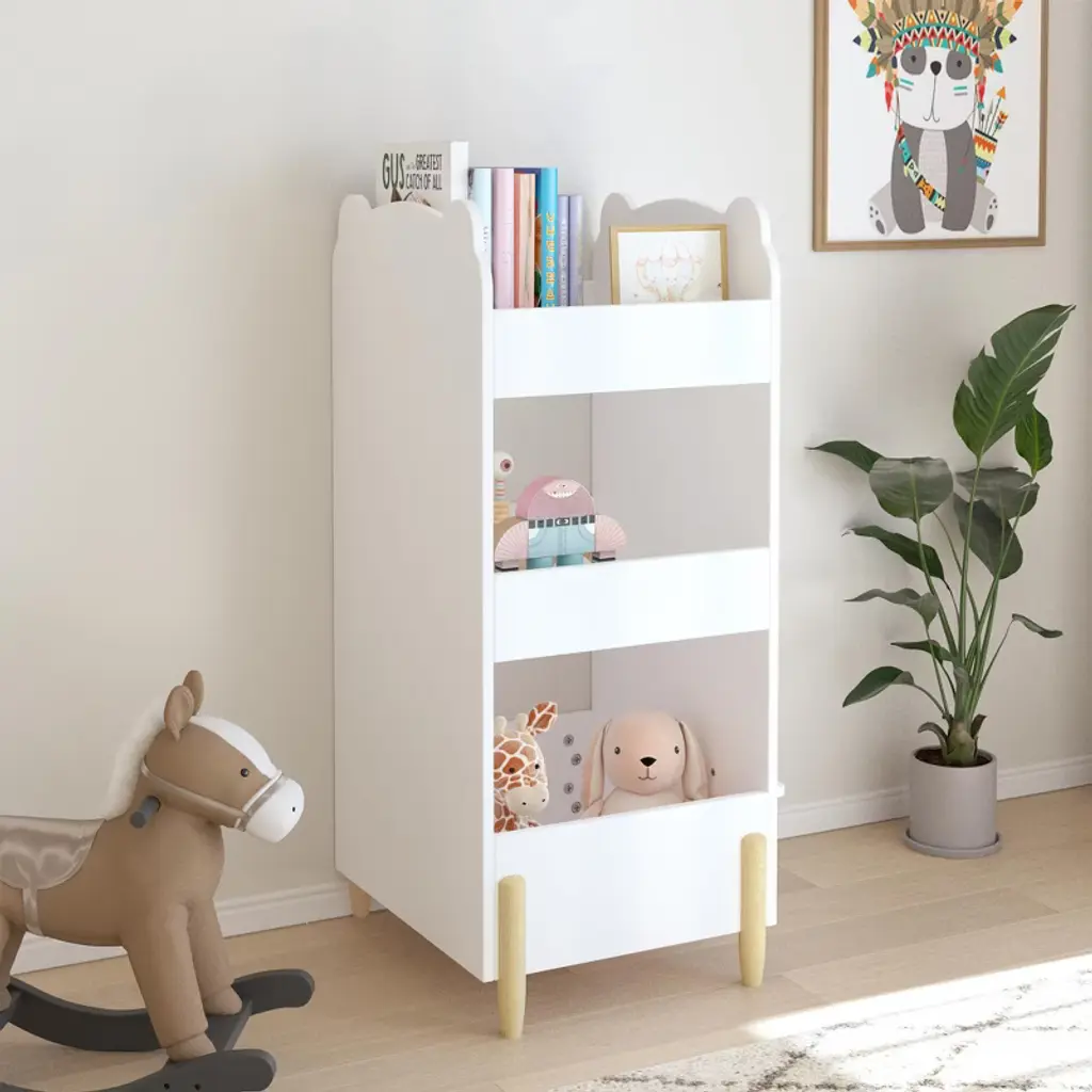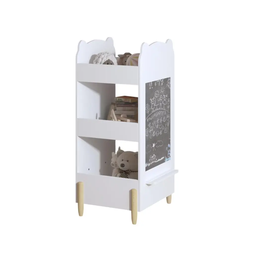 This organizer features three spacious shelves for easy access to books, toys, and art supplies¡ªencouraging independence and tidy habits. The side panel features a fun chalkboard, perfect for drawing, doodling, or writing practice. Plus, the charming bear-ear silhouette adds a cheerful and friendly touch to any nursery, bedroom, or playroom, making cleanup a joy.