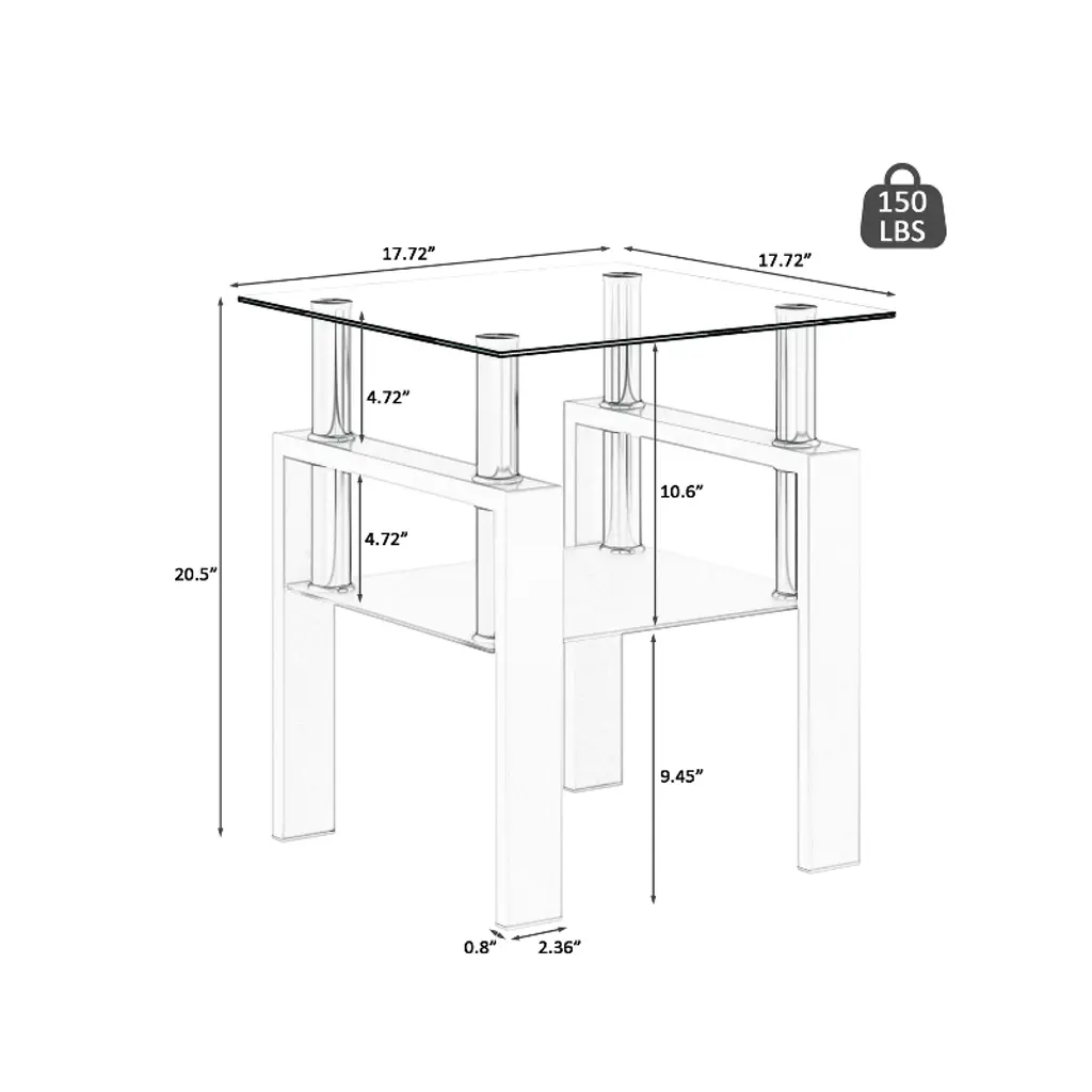 Kwpzqeb End Tables With Tempered Glass, 2-tier Nightstands With Storage Shelves, Industrial-end Table For Bedroom Living Room Study,transparent+white