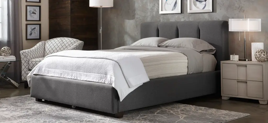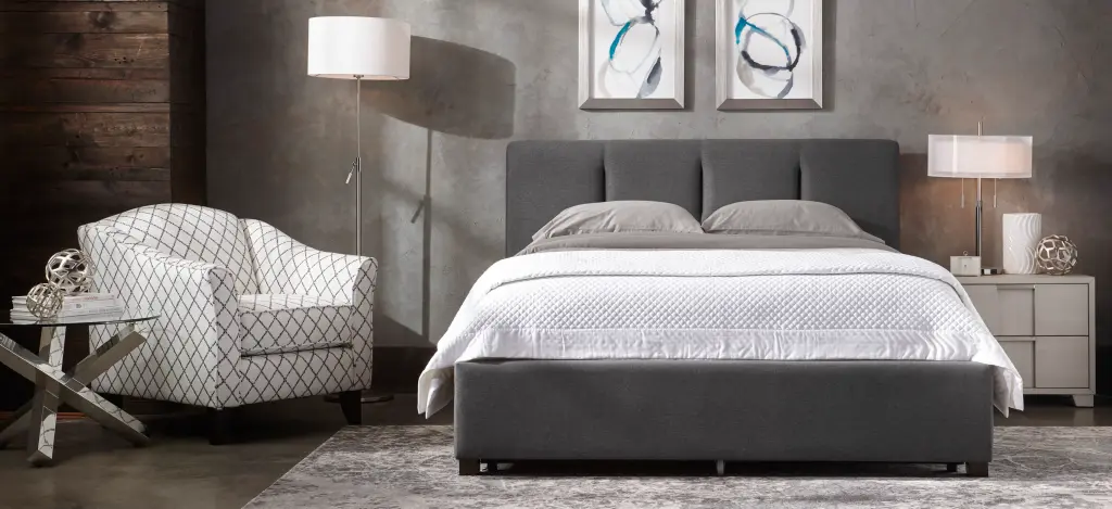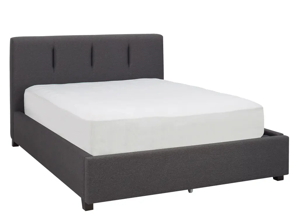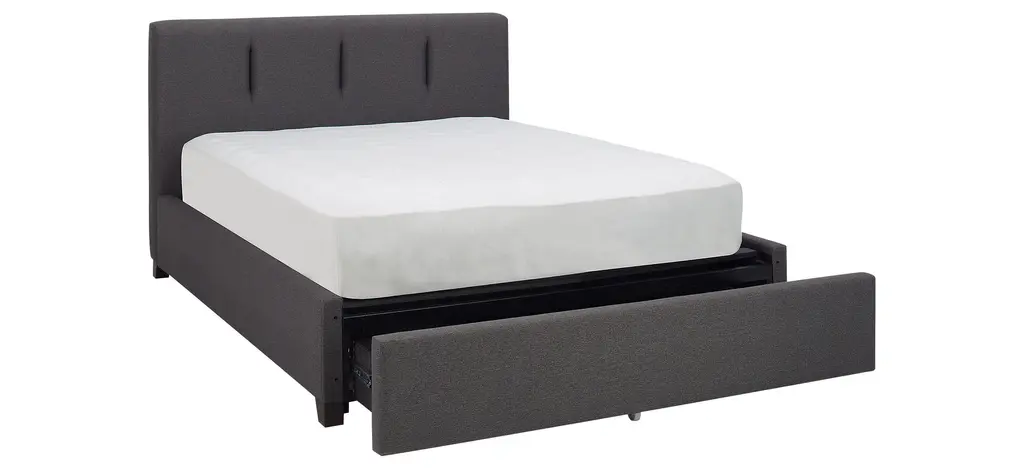 The Lansing king platform storage bed offers undeniable comfort in a sleek, contemporary package. Upholstery on the frame and headboard add softness, making it much easier to sit up in bed. Plus, two built-in drawers are great for extra storage.