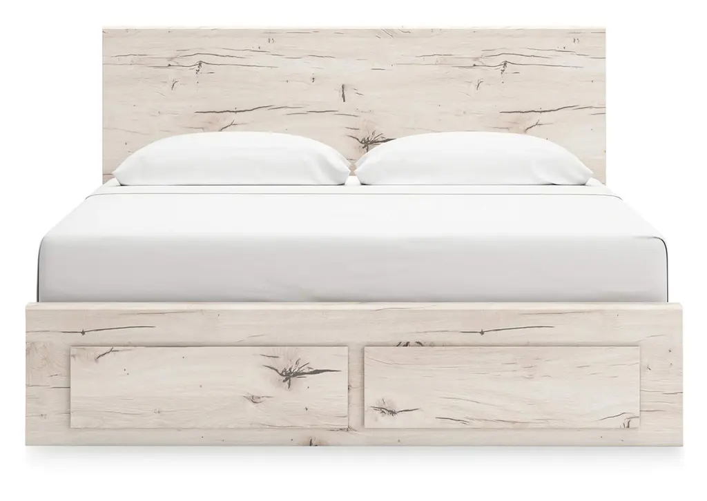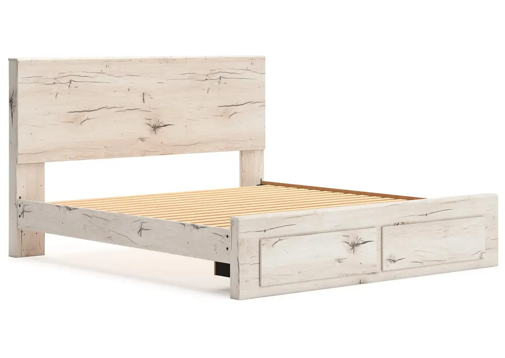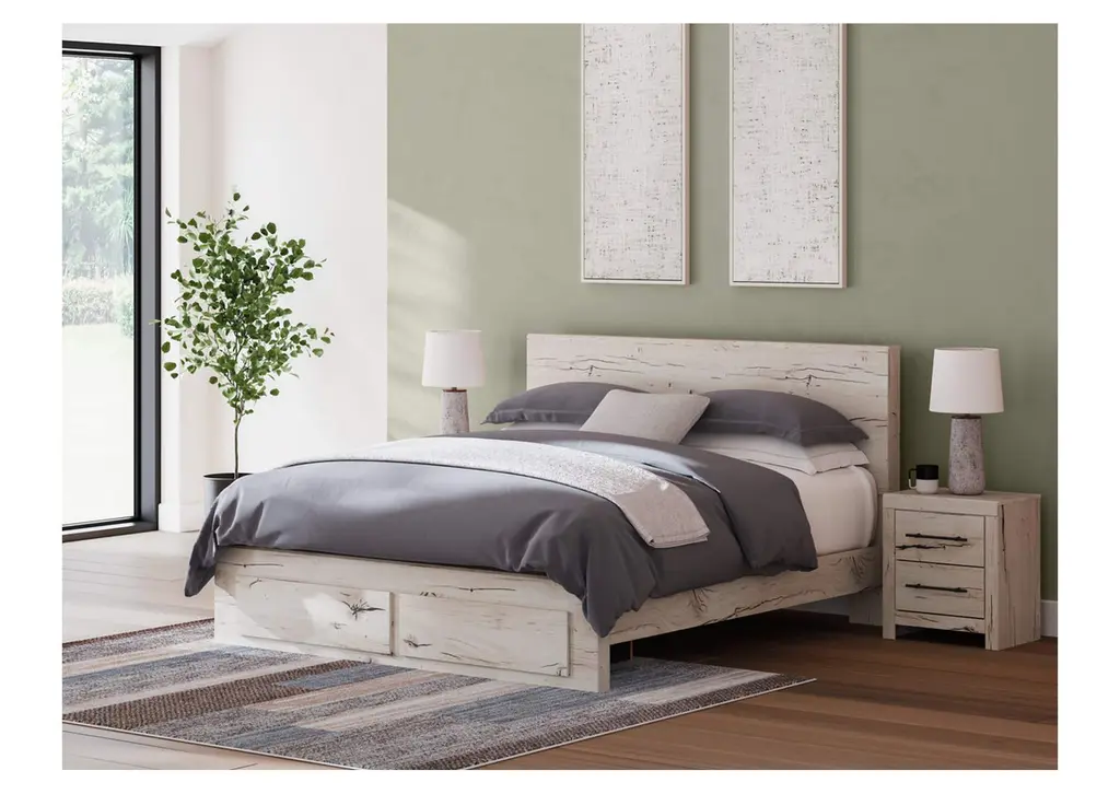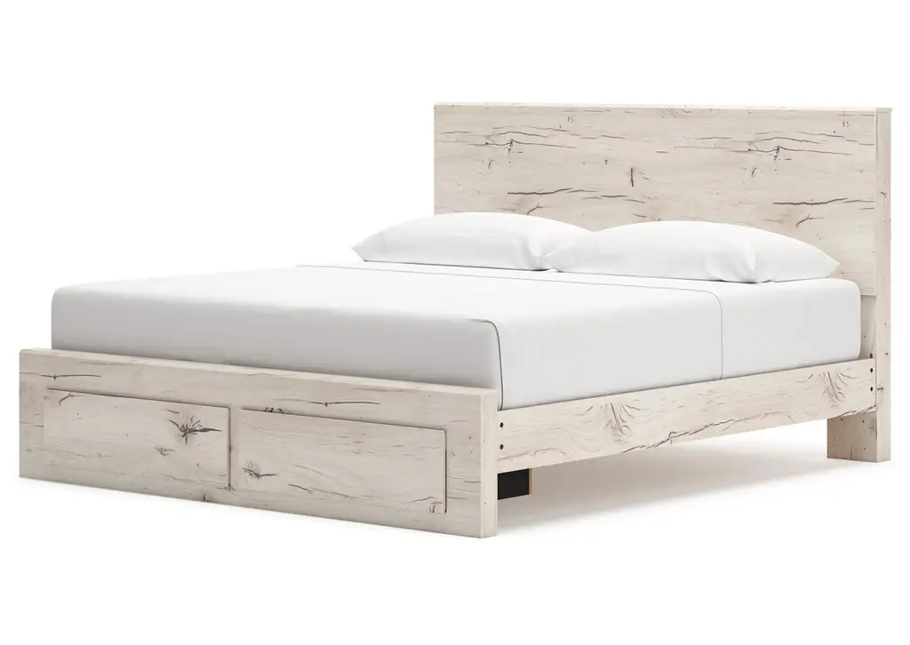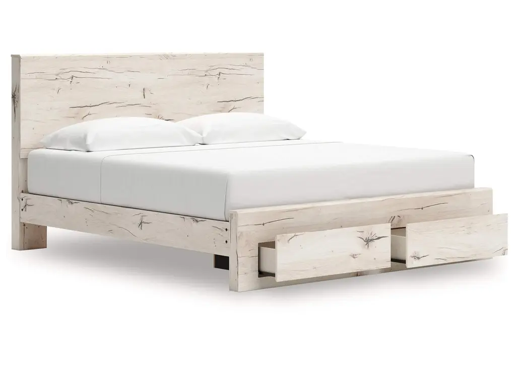 A fresh take on country living, the Lawroy king panel storage bed strikes the perfect balance between farmhouse and contemporary. Its rustic white finish and replicated reclaimed oak grain merge effortlessly with the hearty, clean-lined look we love today. Two storage drawers help you keep clothes organized and put clutter in its place. You’ll love how this bed's simple design transforms your bedroom into a harmonious haven. Weight 242.000 lbs. (108.9kgs.)
