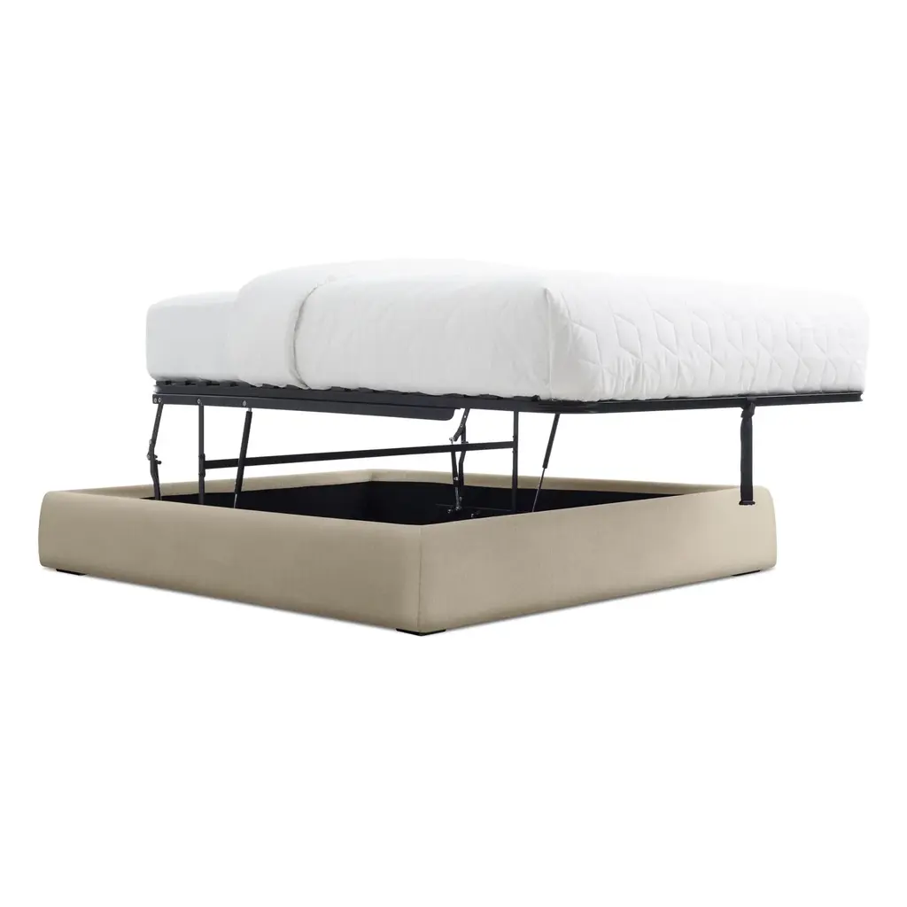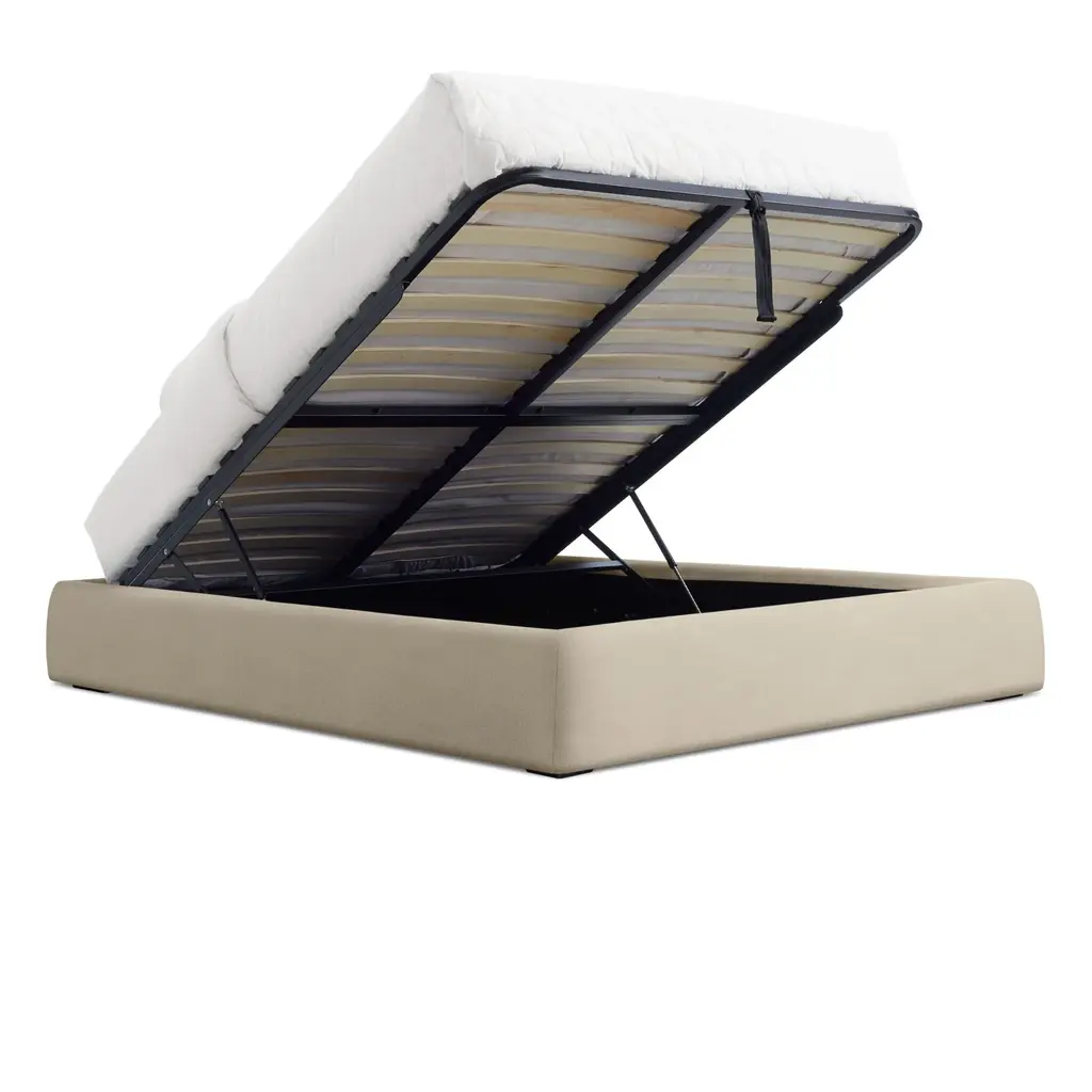 Sleep well knowing that you are on top of your storage. Literally. With a piston driven mechanism that lifts the entire mattress, the Lid Storage bed provides an inconspicuous spot for whatever needs to be stashed below. Storage compartment is lined to minimized dust and keep items off of floor surfaces.