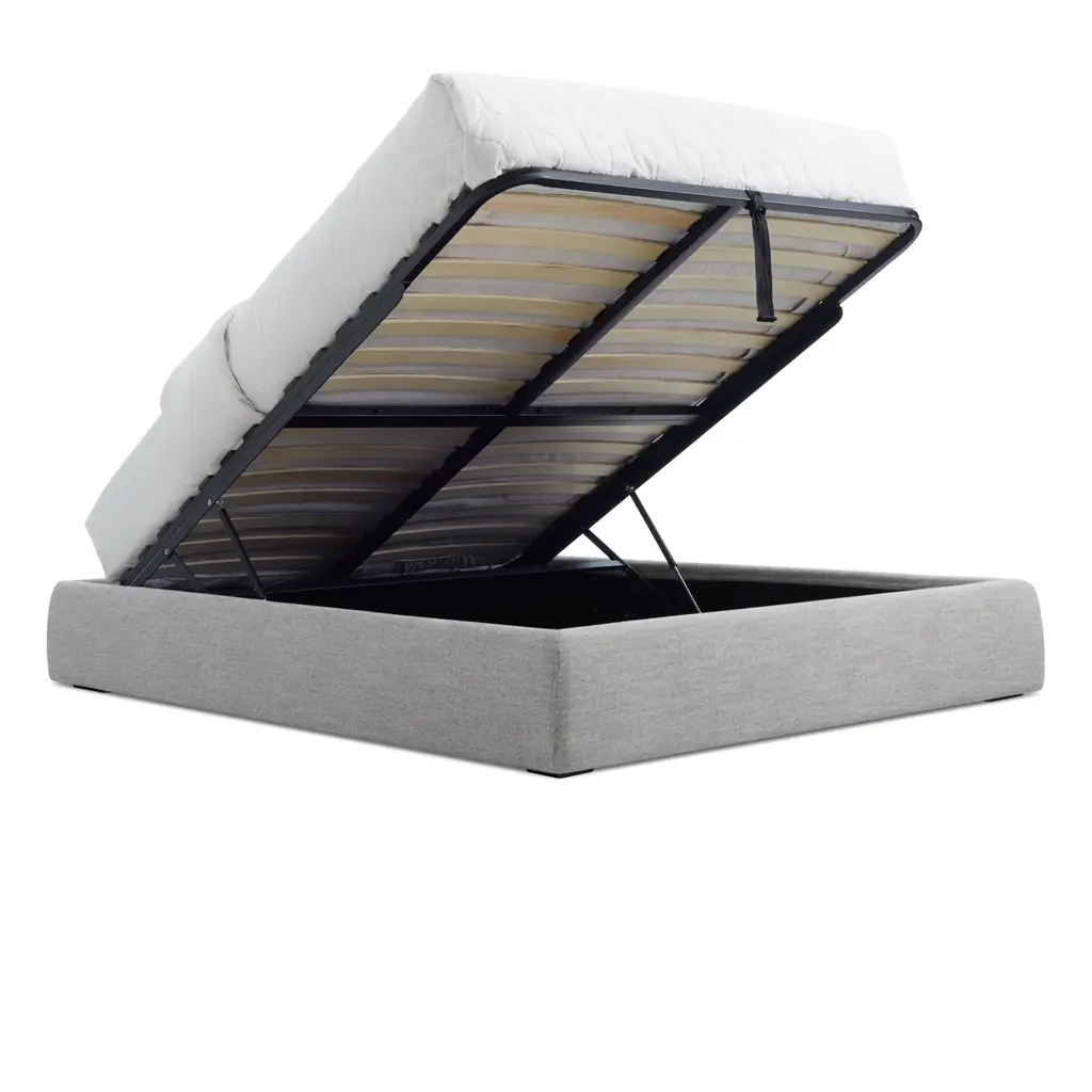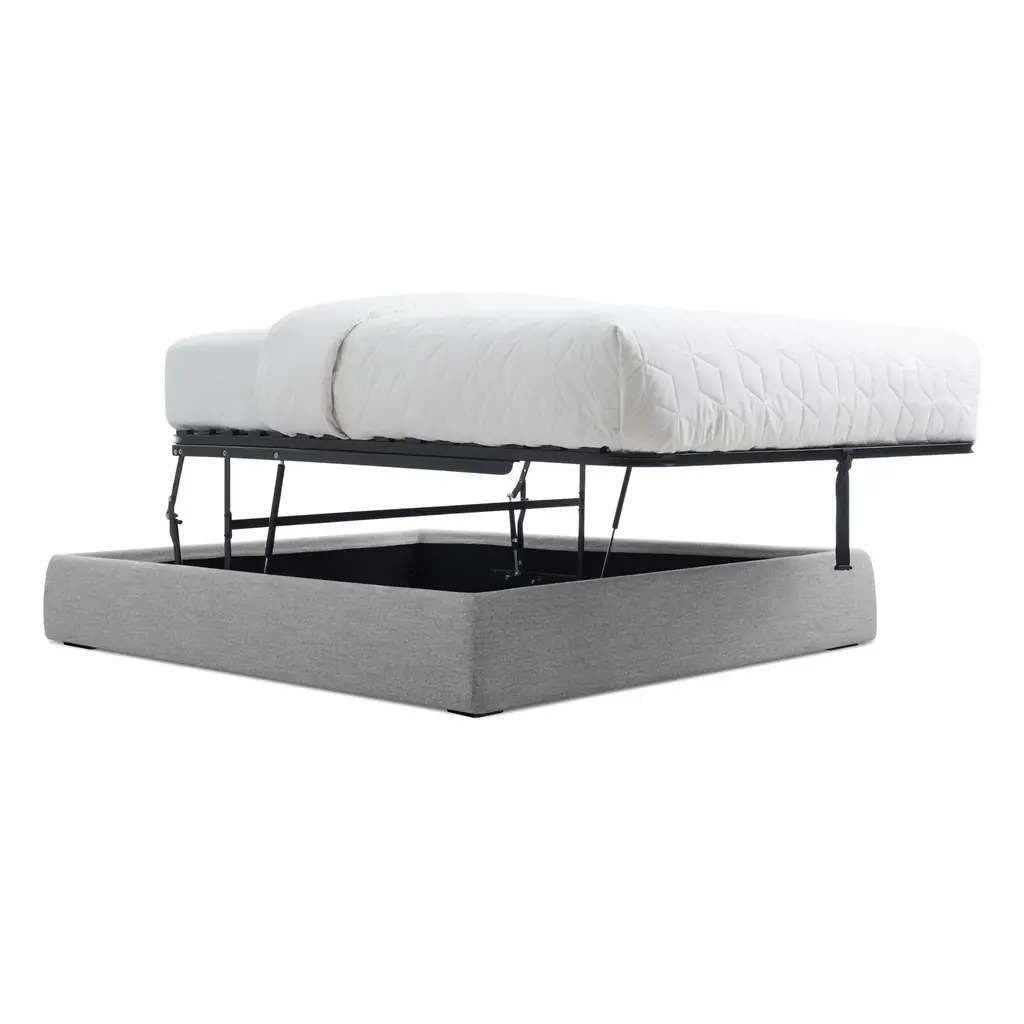 Sleep well knowing that you are on top of your storage. Literally. With a piston driven mechanism that lifts the entire mattress, the Lid Storage bed provides an inconspicuous spot for whatever needs to be stashed below. Storage compartment is lined to minimized dust and keep items off of floor surfaces.