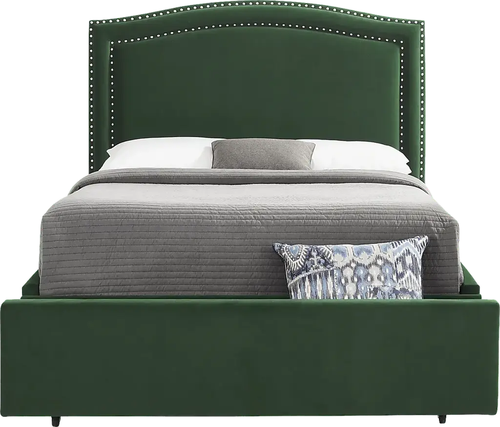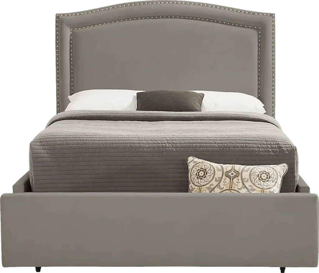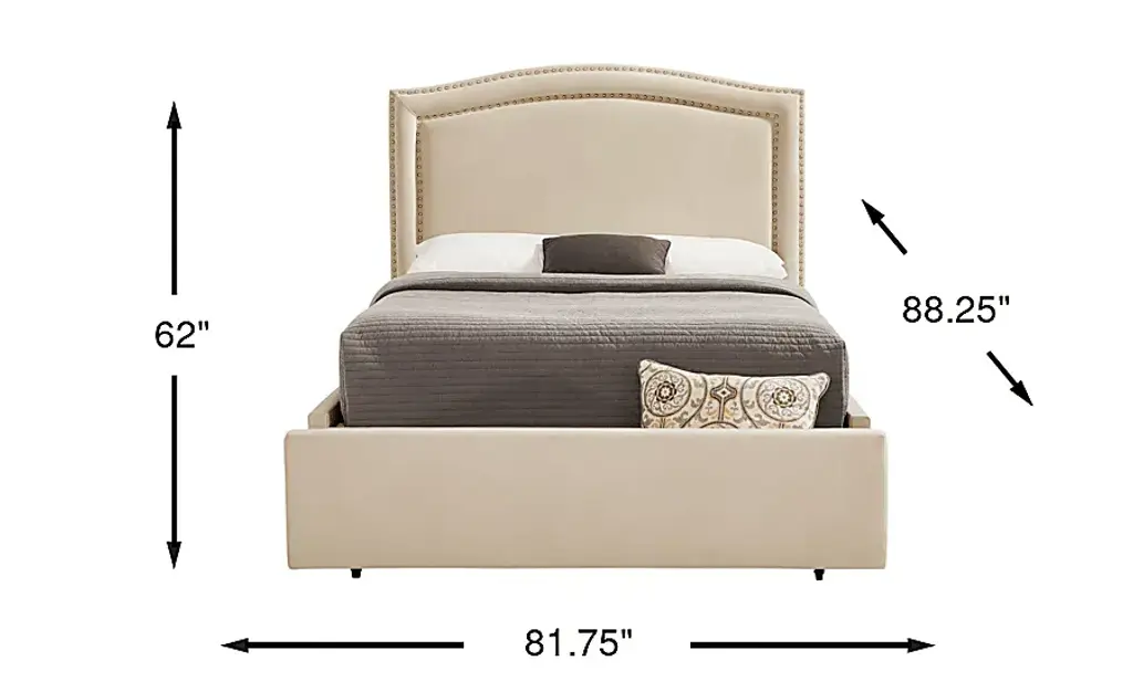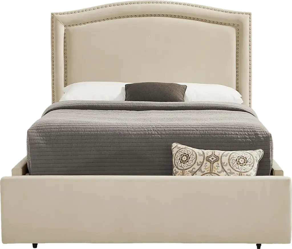 A contemporary design and classic silhouette make the Loden II bed a wonderful addition to your sleep space. Soft cream-colored upholstery is accented with a double row of nailhead trim along the gentle curves of the headboard, bringing a subtle dose of glamour and a clean look that remains timelessly elegant. Built-in drawers add convenient storage for linens, clothing and more.