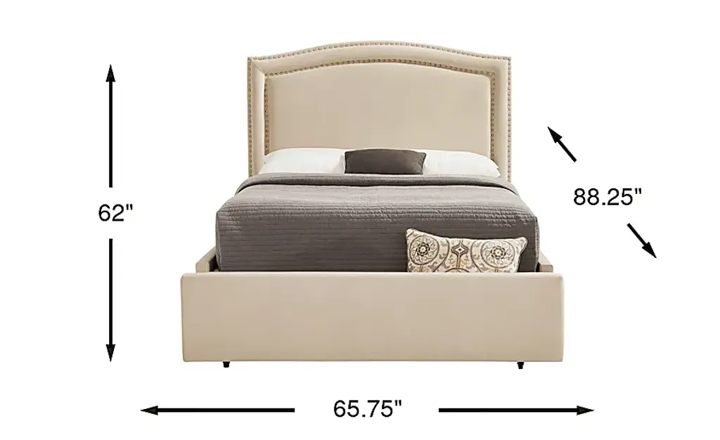 A contemporary design and classic silhouette make the Loden II bed a wonderful addition to your sleep space. Soft cream-colored upholstery is accented with a double row of nailhead trim along the gentle curves of the headboard, bringing a subtle dose of glamour and a clean look that remains timelessly elegant. Built-in drawers add convenient storage for linens, clothing and more.