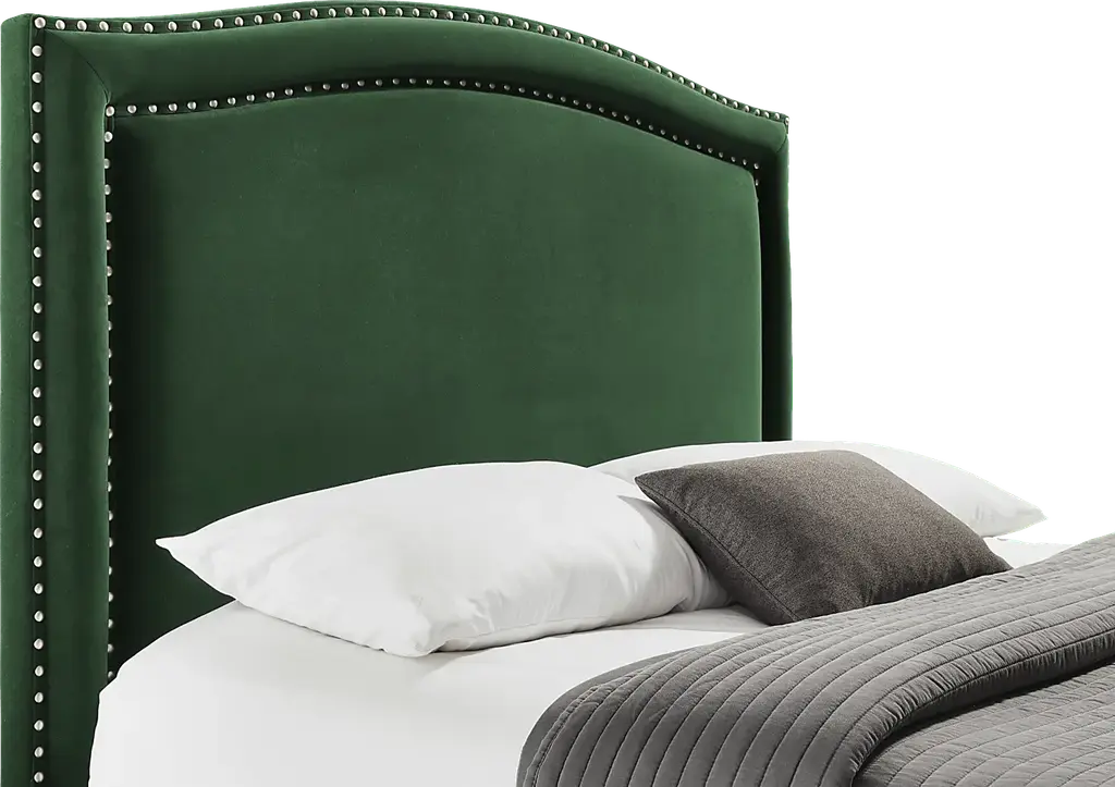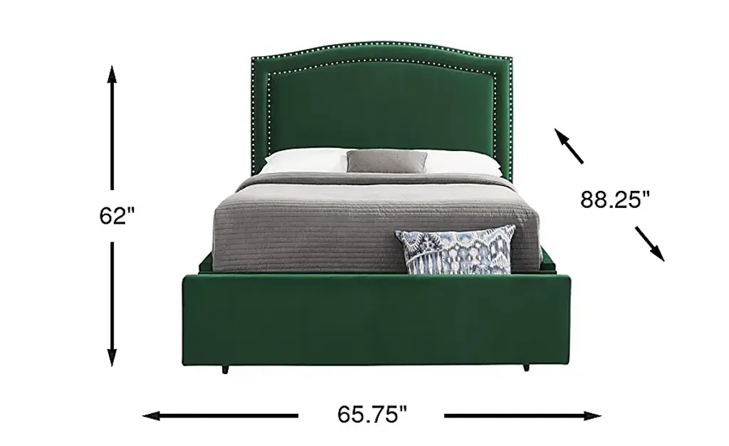 A contemporary design and classic silhouette make the Loden II bed a wonderful addition to your sleep space. Soft green upholstery is accented with a double row of nailhead trim along the gentle curves of the headboard, bringing a subtle dose of glamour and a clean look that remains timelessly elegant. Built-in drawers add convenient storage for linens, clothing and more.