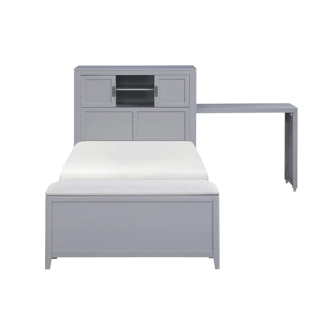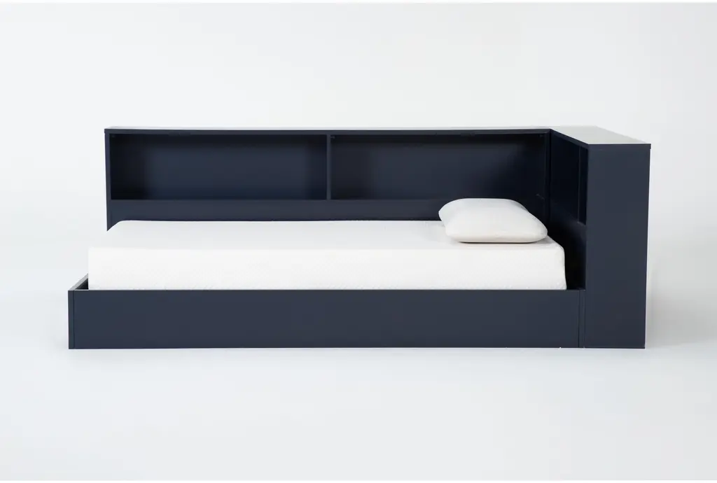 Luca Blue Twin Wood Corner Bookcase Storage Bed | Captain | Shelves