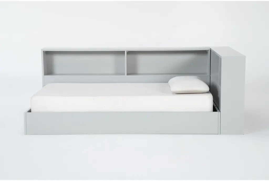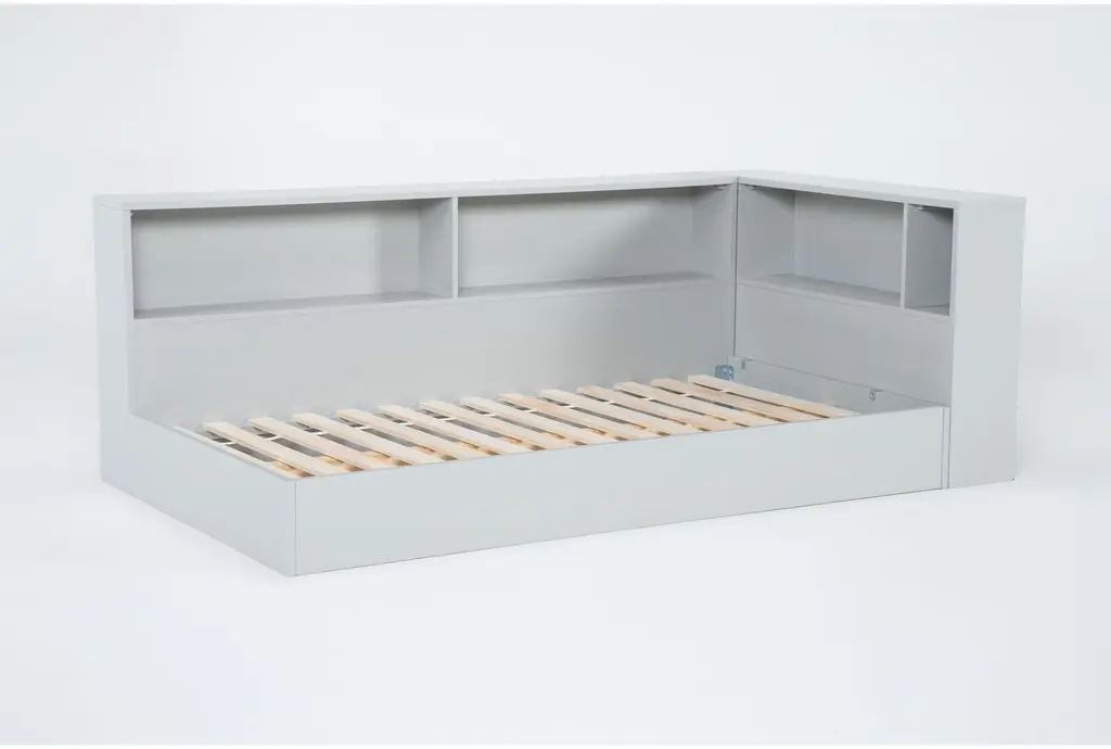 Luca Grey Full Wood Corner Storage Bookcase Bed | Captain | Shelves
