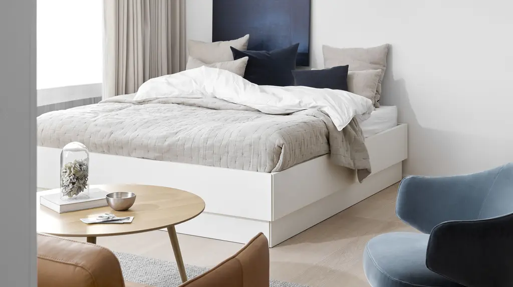 Let your body sink down and feel relaxation wash over you. Sleep like an angel in the elegant Lugano bed. Keeping a minimalist look with a clean wooden frame, this modern bed will bring a sense of calm and serenity to your bedroom. Fitted with a plinth base for a more masculine, heavy look this bed invites you into comfort. The tufted headboard adds a traditional touch and creates a soft, welcoming atmosphere. Lift the bed frame and reveal plenty of storage space for extra bedding, thick winter blankets or perhaps even for hiding presents.