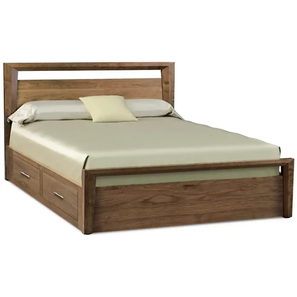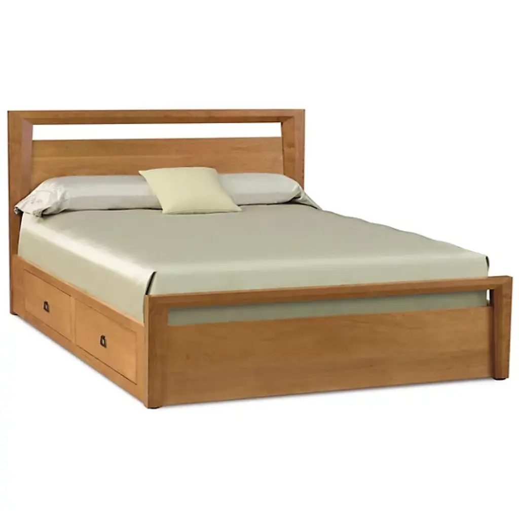 Supplying function without sacrificing appeal. The Copeland Furniture Mansfield Storage Bed makes great use of the space beneath the mattress while also delivering brilliant style through the rest of its frame. With Solid Hardwood creating a durable and dynamic structure, the bed offers a gorgeous natural aesthetic. Each section of the handcrafted body shows the attentive manufacturing that goes into the detailed building process. After your eyes move past the striking visual, the bed continues to impress with convenient and substantial storage drawers at the base of the frame. Some beds may choose to be prettier than useful or vice versa, but this piece shows there’s no reason you can’t have both.