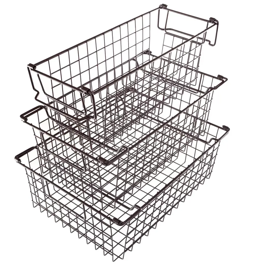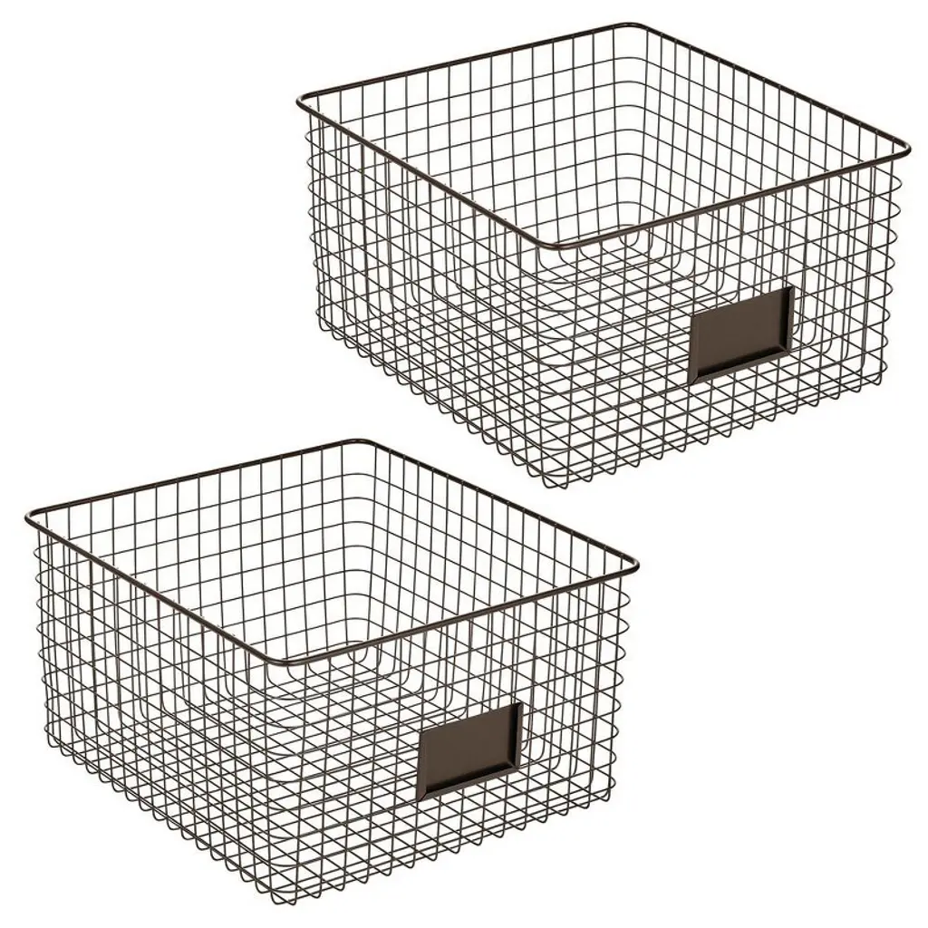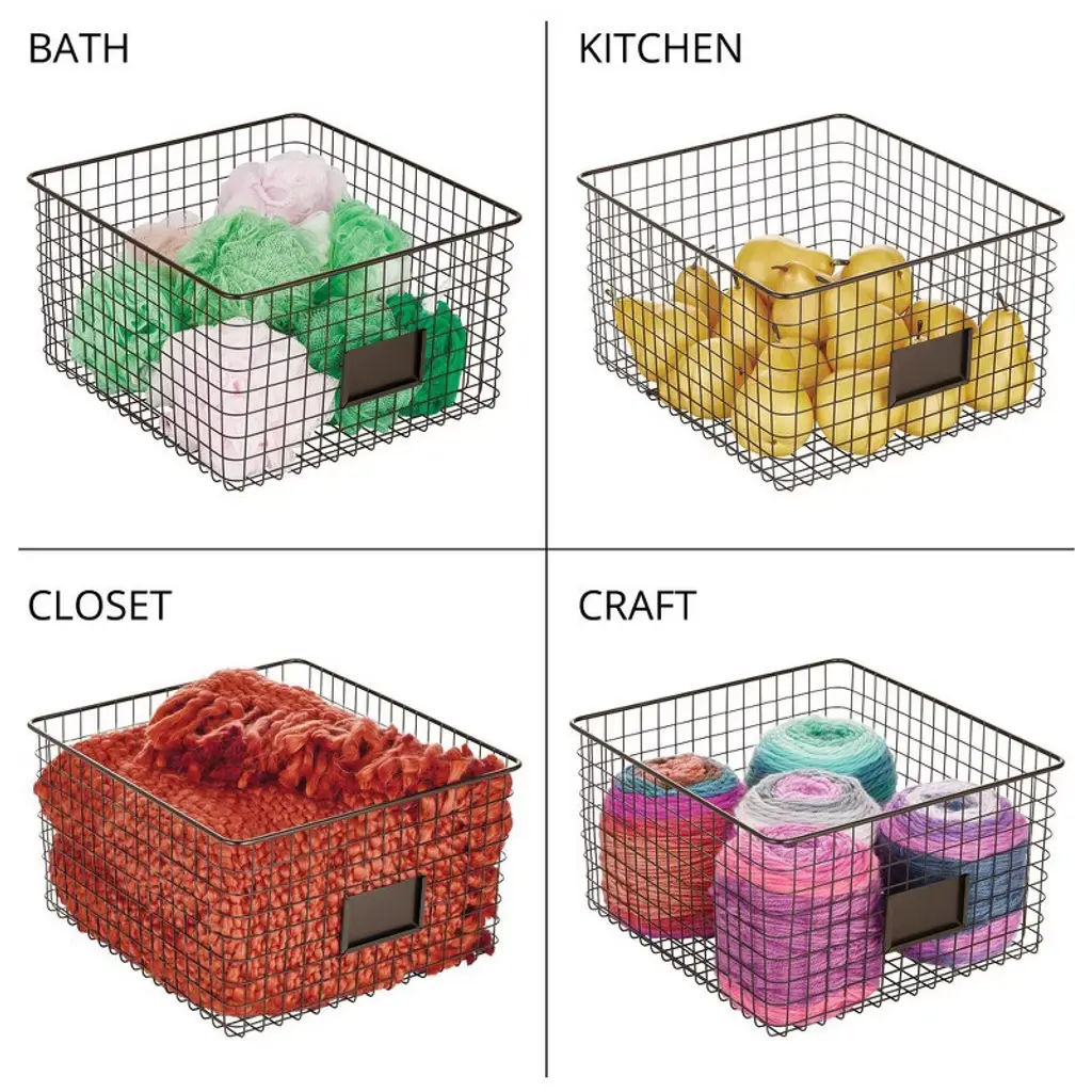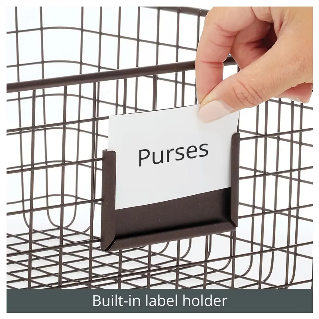Style your linen, coat, or bedroom closet with these Metal Baskets by mDesign. These rustic, farmhouse-inspired basket bins keep items contained and sorted while making any of your closets look beautiful. Easily hold bedding, linens, sweaters, pants, skirts, beauty supplies, hats, scarves, towels, accessories, shoes, purses, and more with these durable metal bins. Each bin features a label holder so you can easily add a custom label and identify where each item is placed. Optimize space inside your bedroom, linen, bathroom, hallway, or entryway closet shelves with these charming organizer bins. Mix and match with other metal, woven, or wooden baskets and create custom storage in any room of your home. mDesign - Solutions for Home. Solutions for Life.