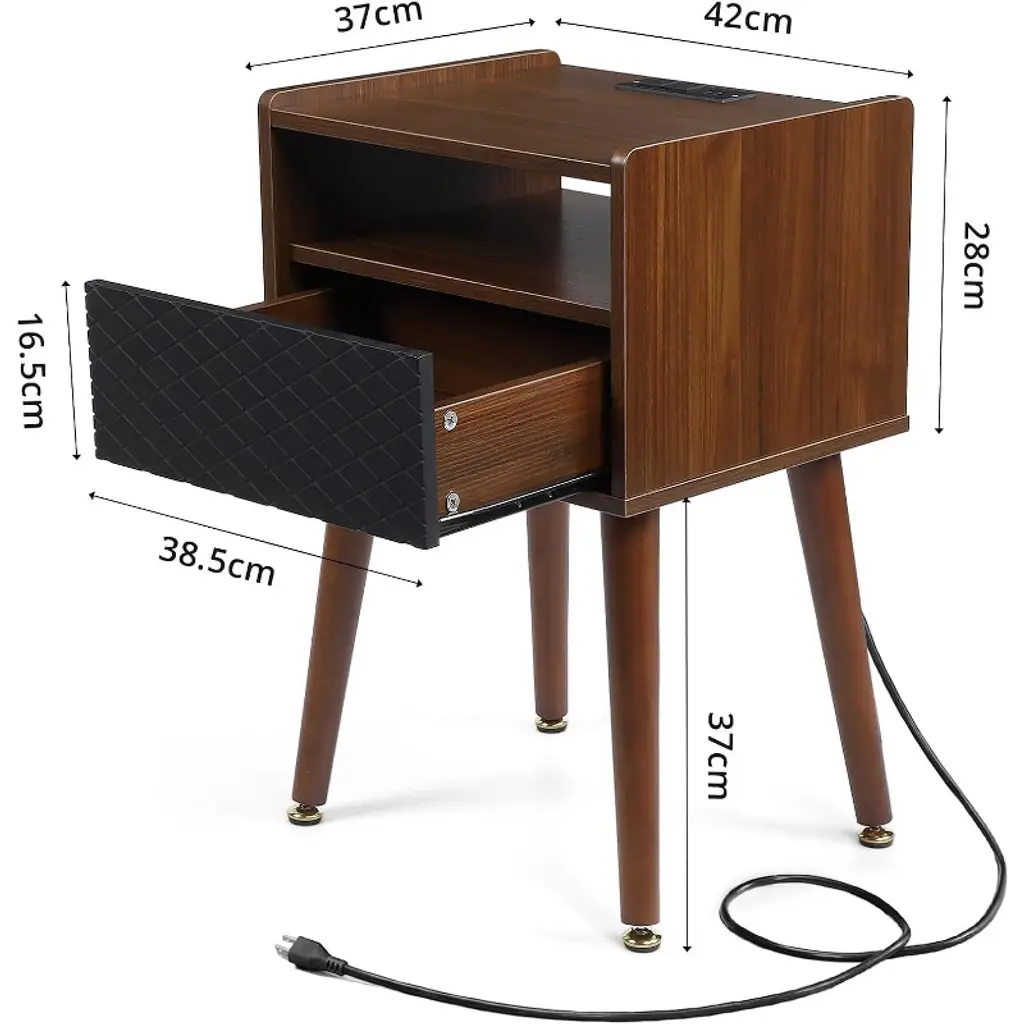 Mid Century Nightstand With Charging Station, Modern Side Table Bedroom With Storage, Small End Bedside Table For Living Room,small Spaces