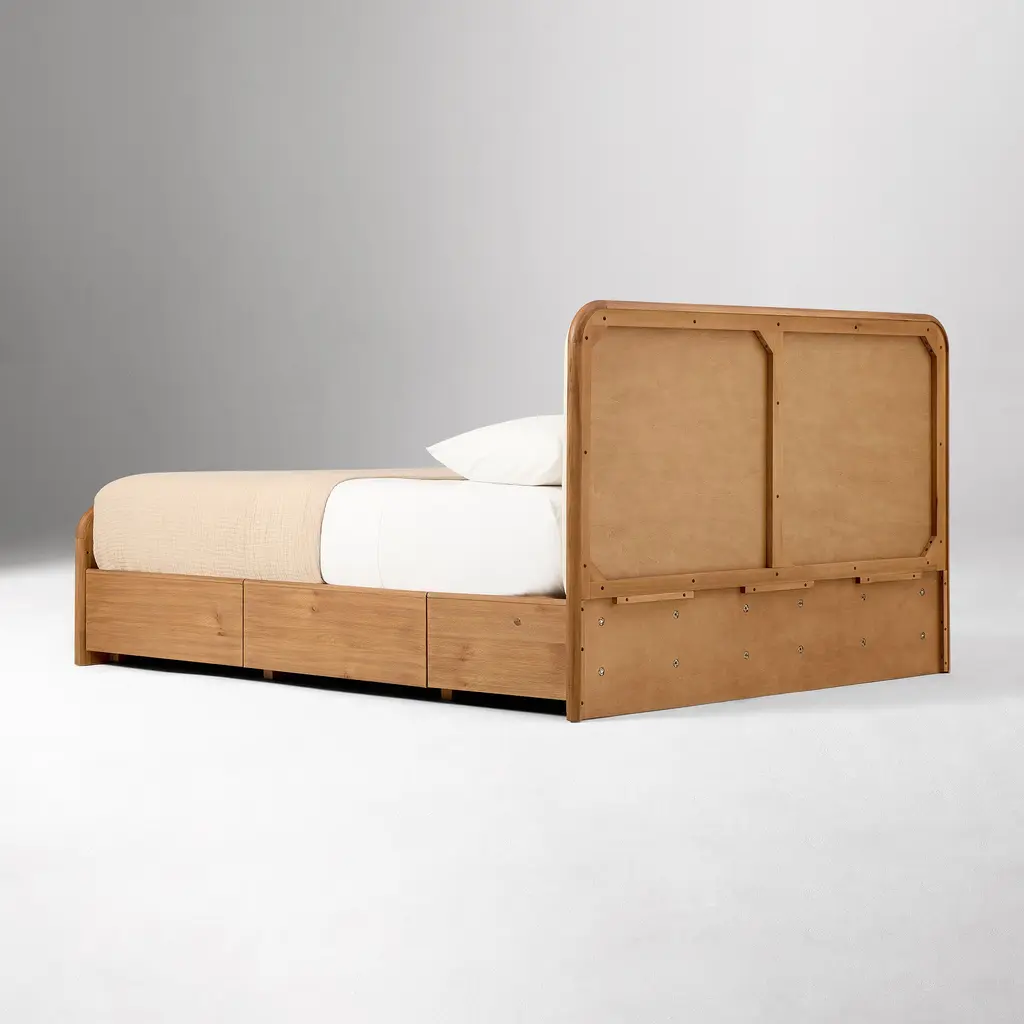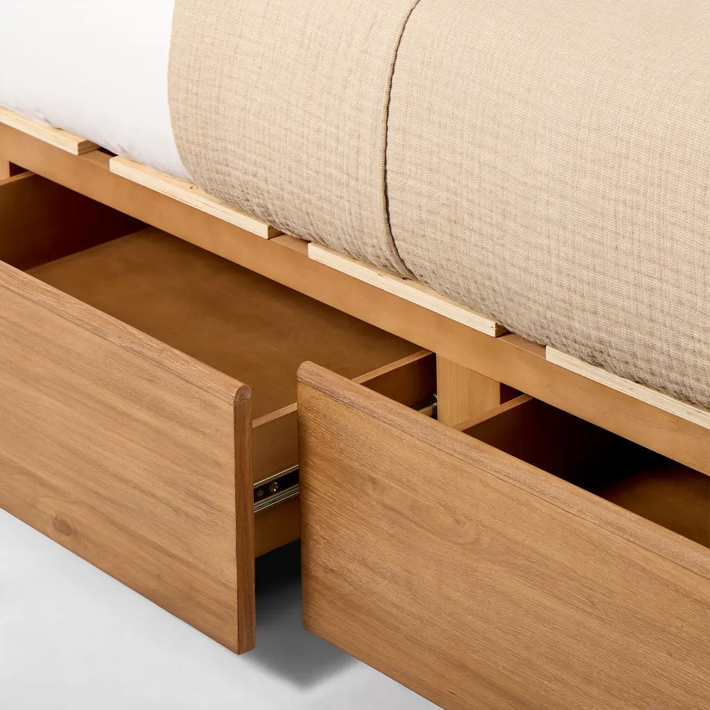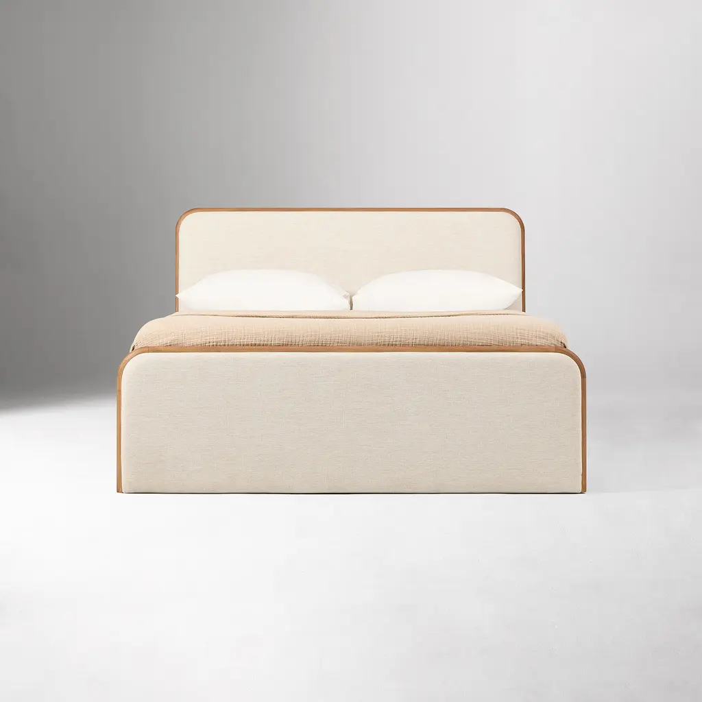 Our best-selling Miles Bed, now with functional storage. Upholstered headboard and footboard with modern wood trim. Made from kiln-dried, sustainably sourced wood. Crafted in a Fair Trade Certified™ facility.