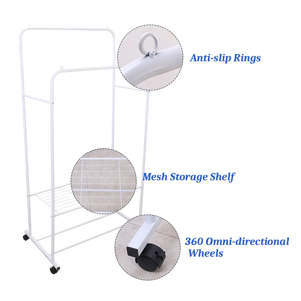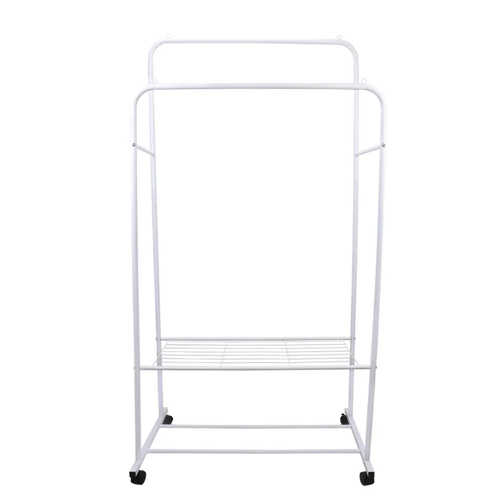 Mobile Clothes Stand On Wheels W/ Storage Shelves For Home Bedroom - White