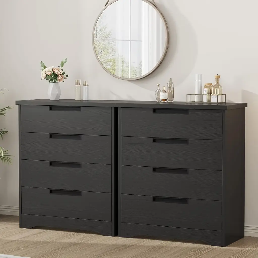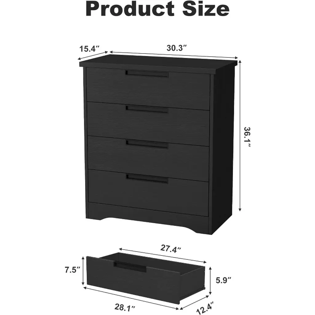 Product Description This 4 chest of drawers is crafted with reinforced wood panels and a solid base that ensures durability and stability, the sturdy build allows it to accommodate a variety of items without risk of damage or deterioration, making it capable of handling everyday demands. The included anti-tipping device improves stability and safety, providing additional protection for your family members.Product informationSize: 30.3 x 15.4 x 36.1 inchesItem Weight: 74.08 poundsMaterial: MDFColor: BlackPacking List:1 x Storage CabinetNote:Different displays may cause the color of the item in the picture a little different from the real thing.Manual measuring,please allow 1~3mm error,thank you.