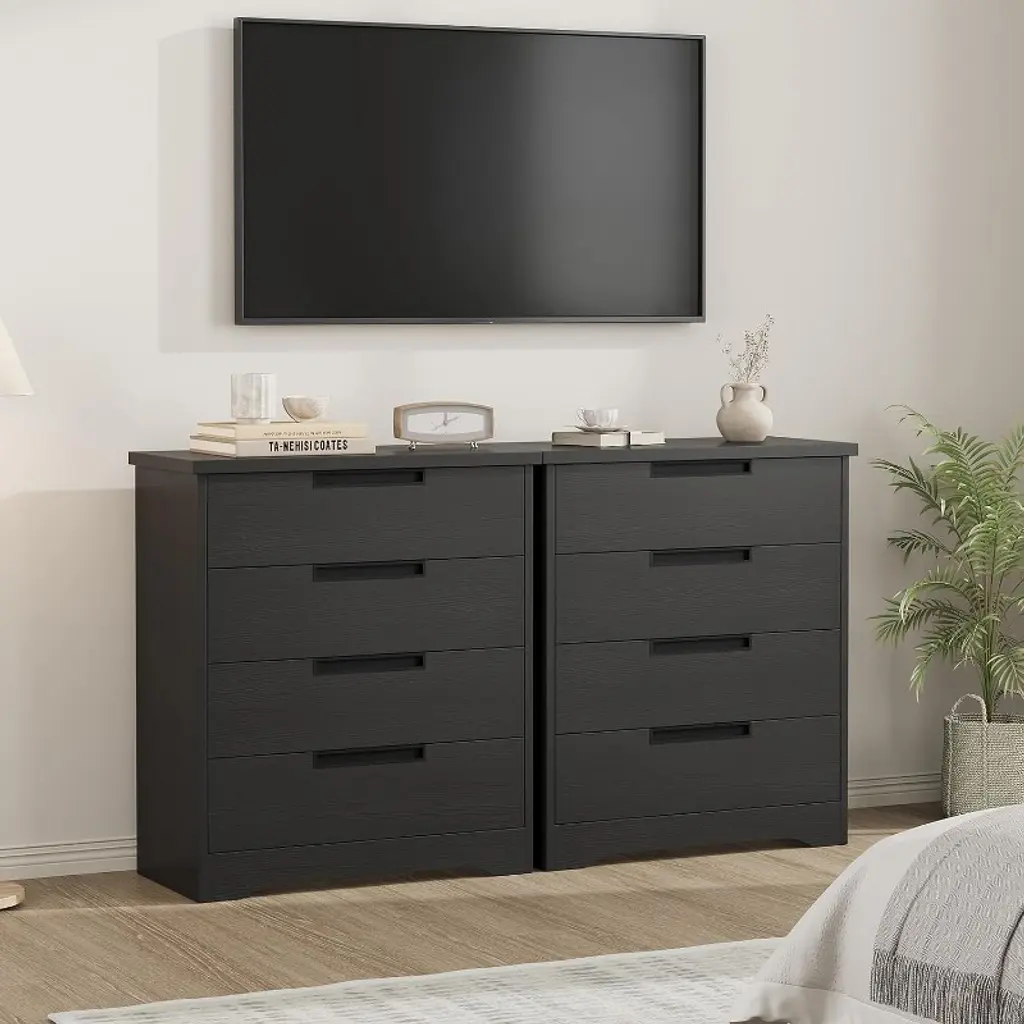 Modern 4 Drawer Dresser With Embedded Handles, Smooth Gliding Drawers & Anti-tip Design, Wooden Storage Chest For Nursery, Bedroom, Living Room