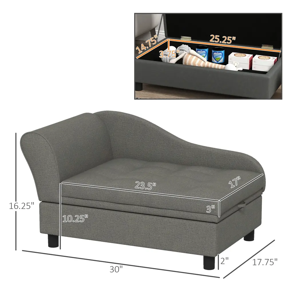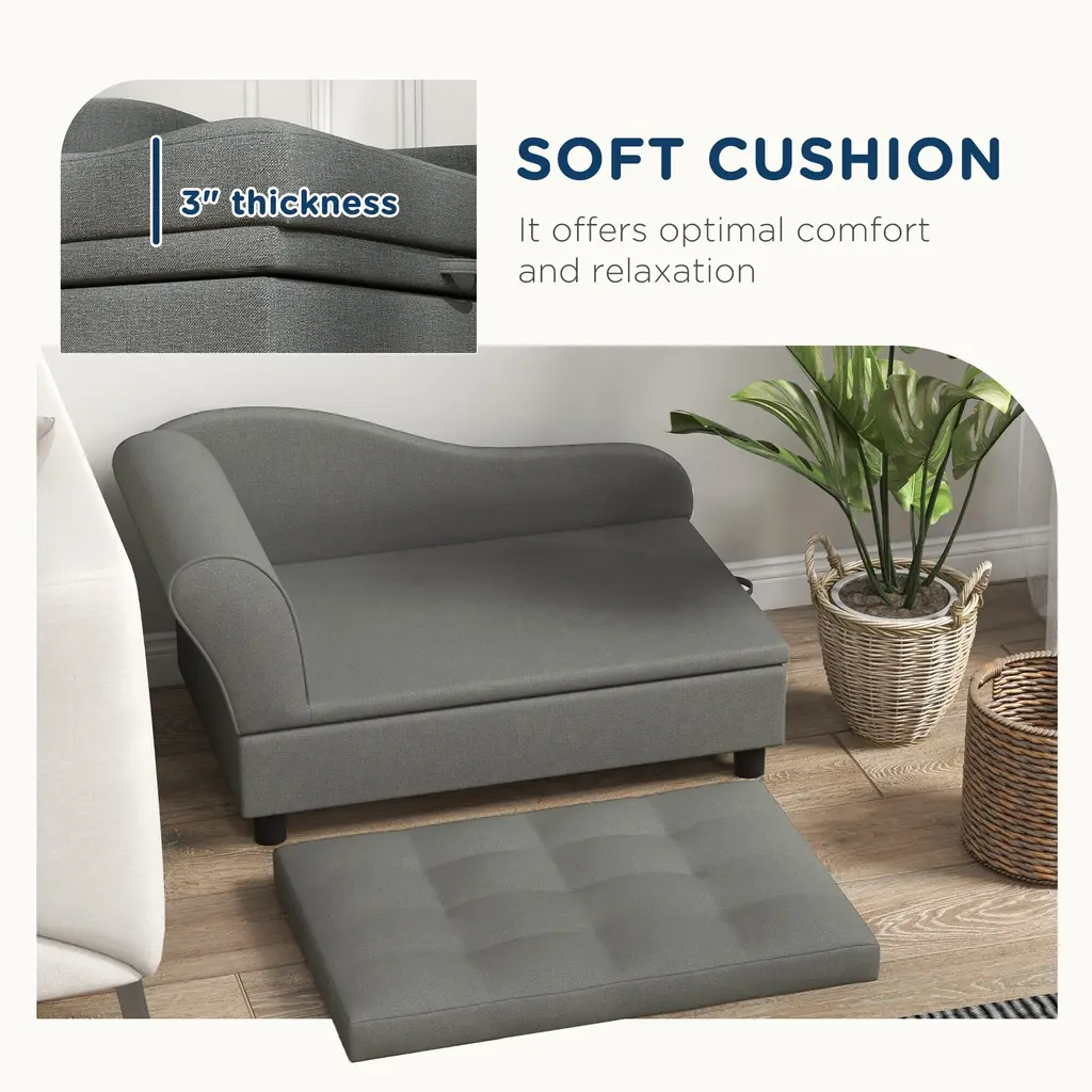 Modern Pet Couch With Tufted Cushion And Under Seat Storage For Living Room Or Bedroom, No Tools Assembly - Gray