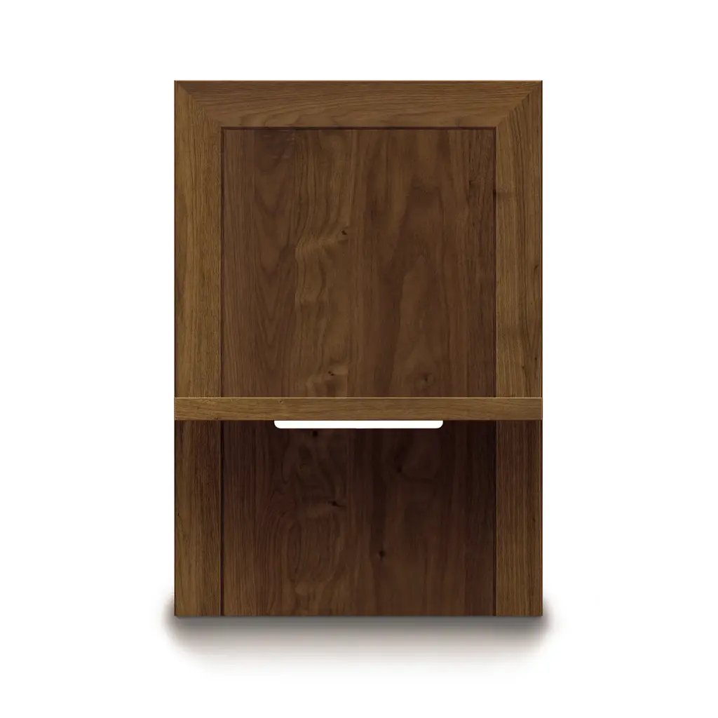 The Moduluxe Attached Integrated Nightstand with Shelf is a sectional piece of furniture from the highly configurable Moduluxe bedroom collection. This nightstand must be connected to a 35" Moduluxe Storage Bed as it is an integrated piece of furniture and cannot stand alone. Base price represents 18.5" wide nightstand in natural cherryShown in 18.5" wide nightstand in natural walnutMatching furniture available in our Moduluxe Furniture CollectionNatural variations in solid wood and hand applied finishes make each piece unique. Slight grain and finish irregularities tell you that the furniture has been crafted from solid wood and are considered hallmarks of quality.