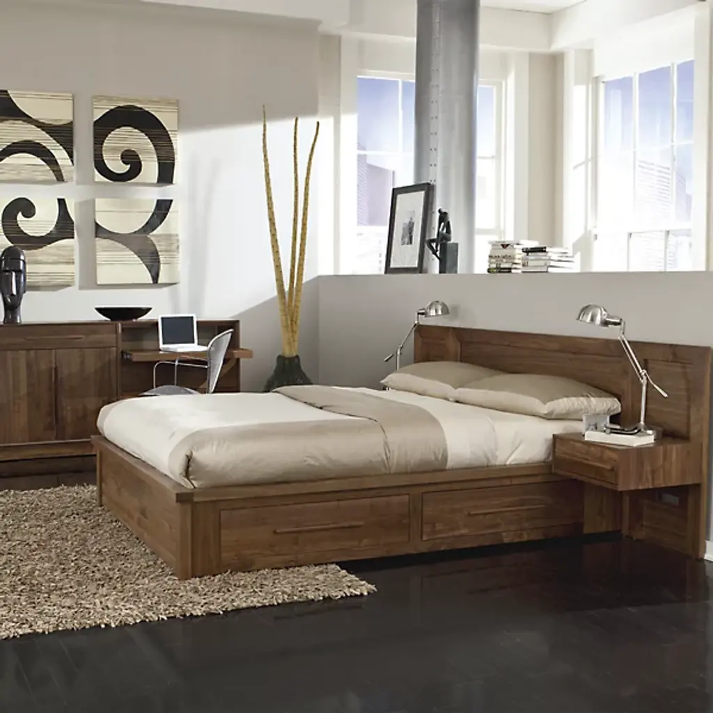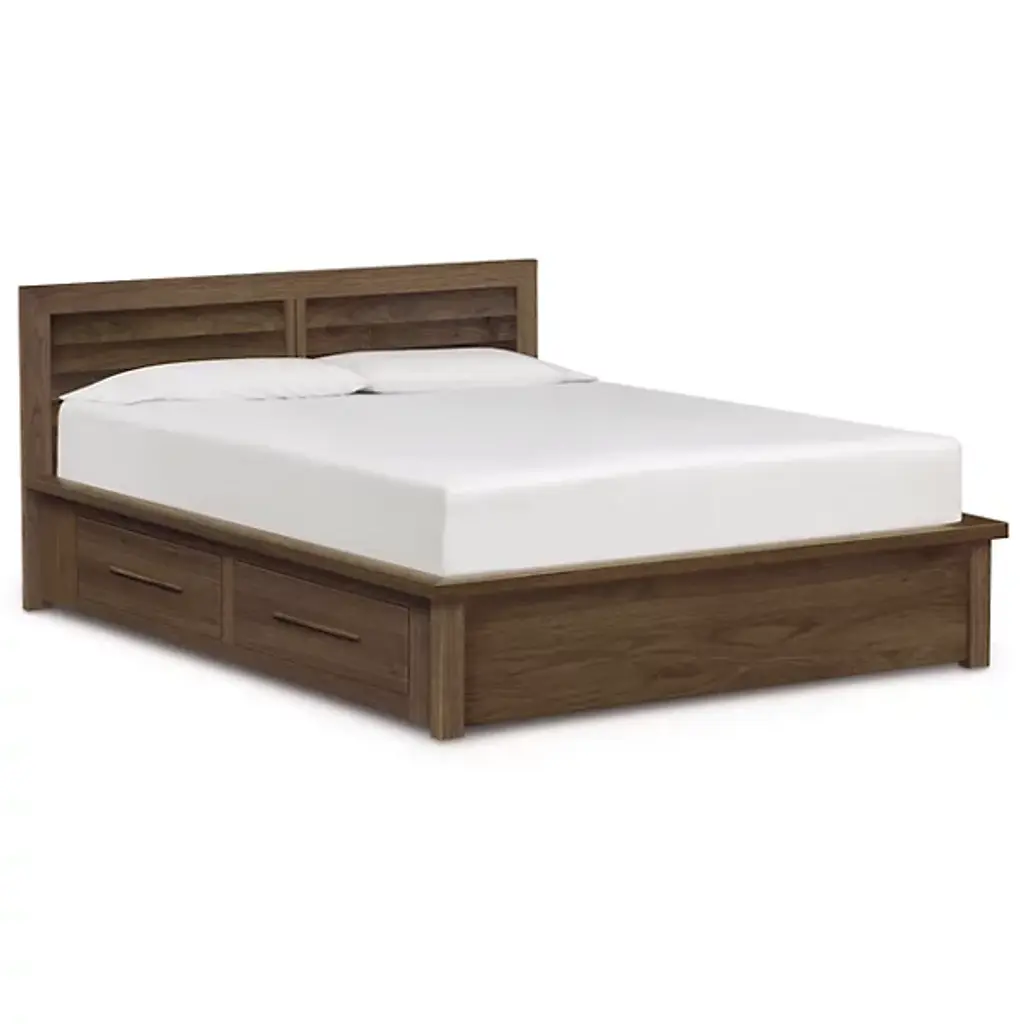 A simple look crafted to perfection. The Copeland Furniture Moduluxe Louvered Storage Bed is designed to appreciate its own aesthetic, with an understated frame showcasing its beautiful structure. Using Solid Hardwood through the expansive and functional body, ever surface and corner of the bed exhibits an intriguing natural beauty, full of swirling lines and knots. The headboard adds texture and depth without detracting from the elegant surfaces of the hand-selected, carefully crafted Wood. While you could stare at the bed all day and admire the beauty, the functional component is not to be overlooked. Handy drawers rest beneath the mattress, making excellent use of space and only adding to the unit’s impressive style.
