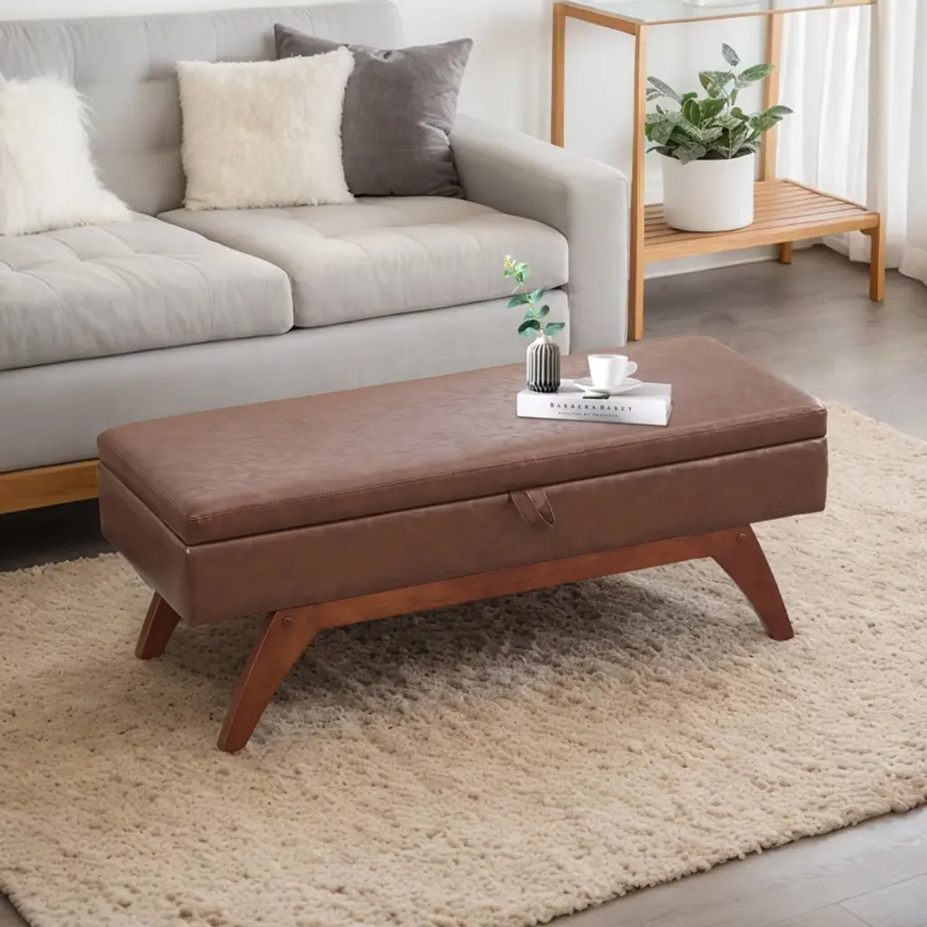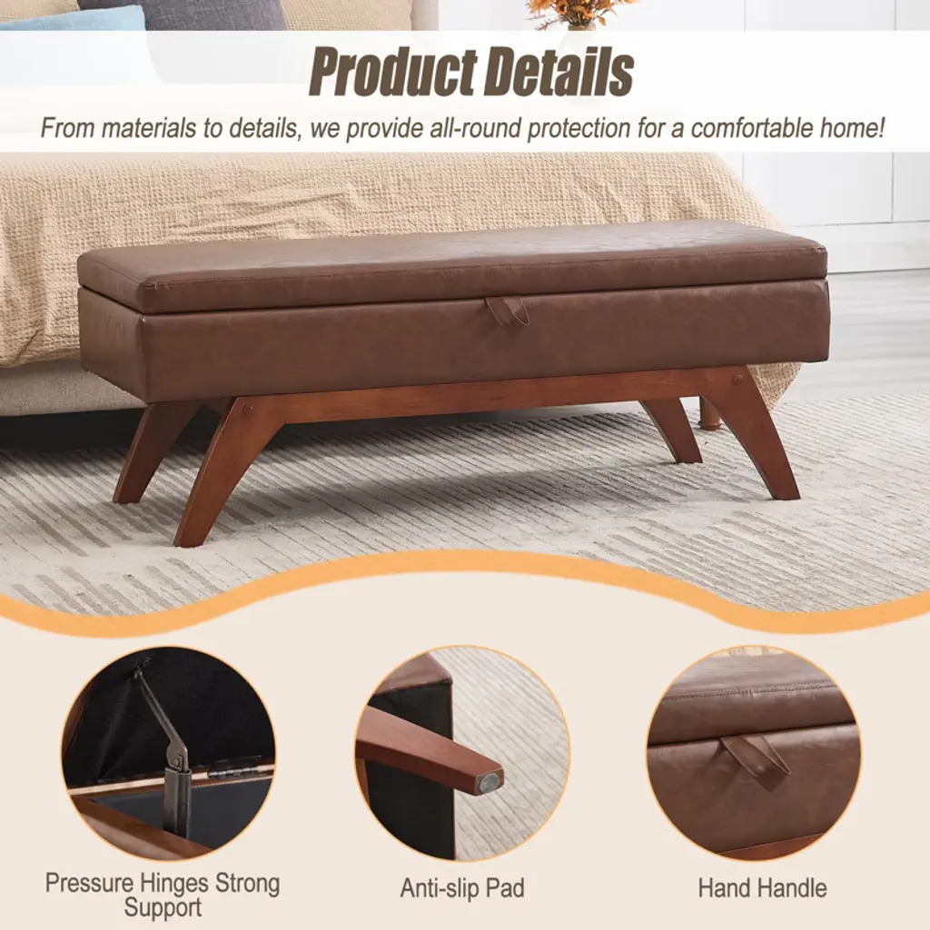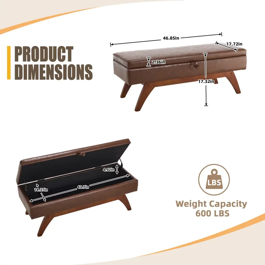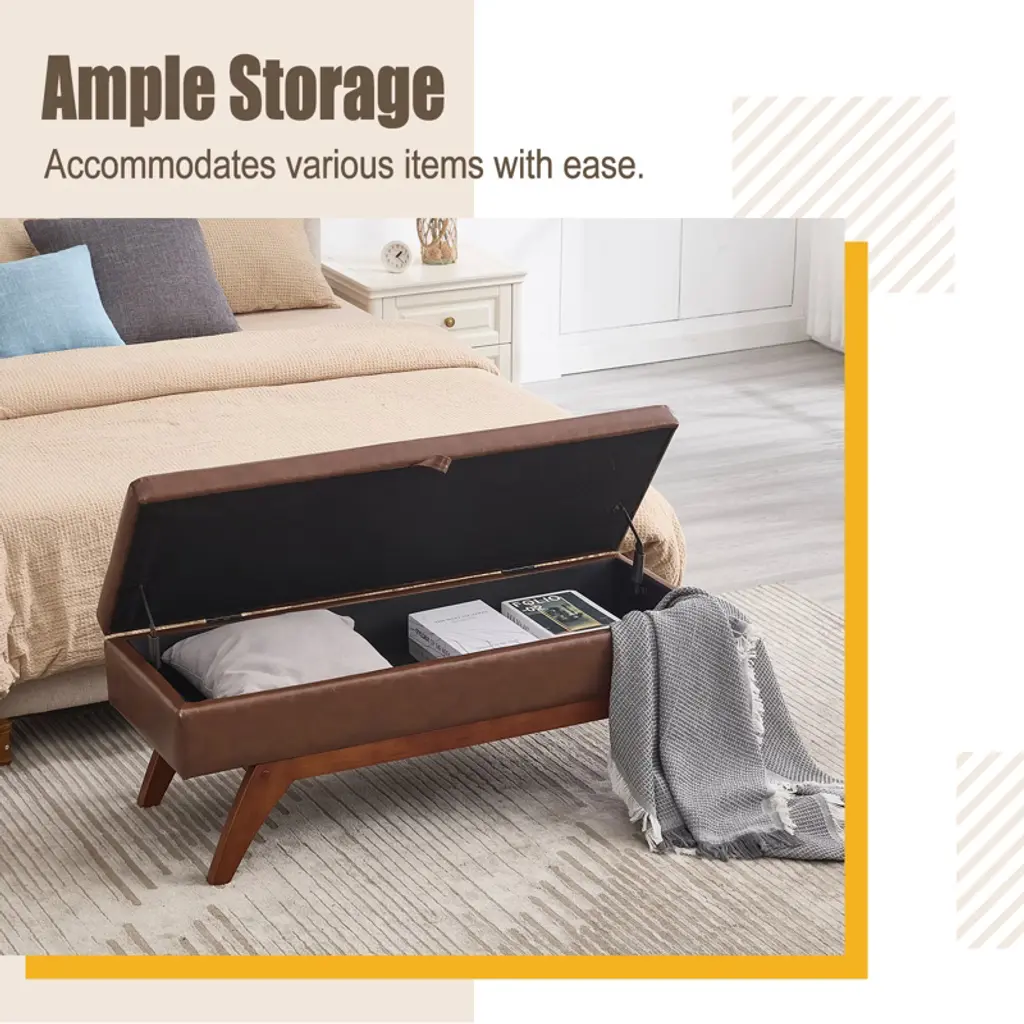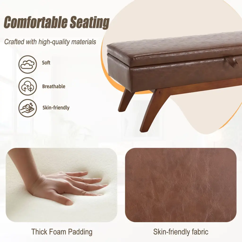 Moonmiss Pu Leather Fabric,solid Wood Feet For Solid Weighing,and Bed End Stool With Storage Function,brown