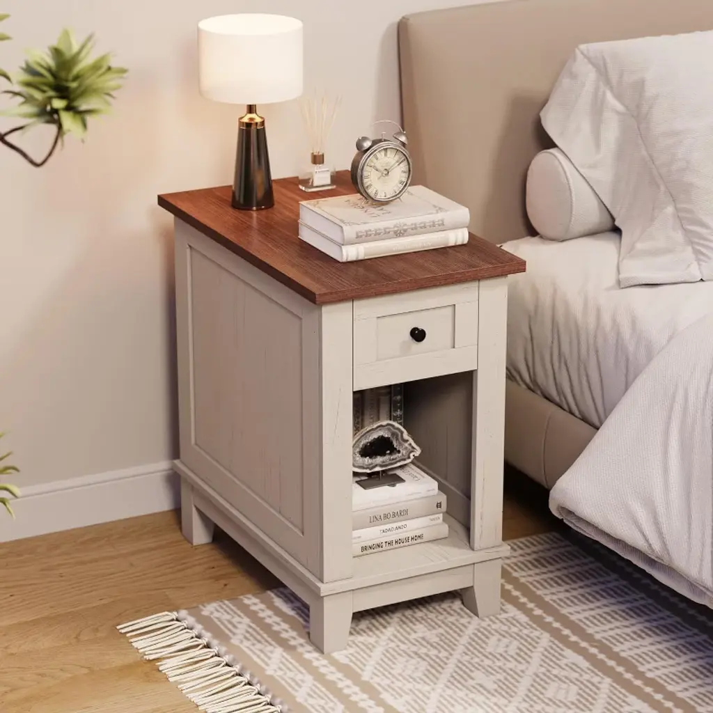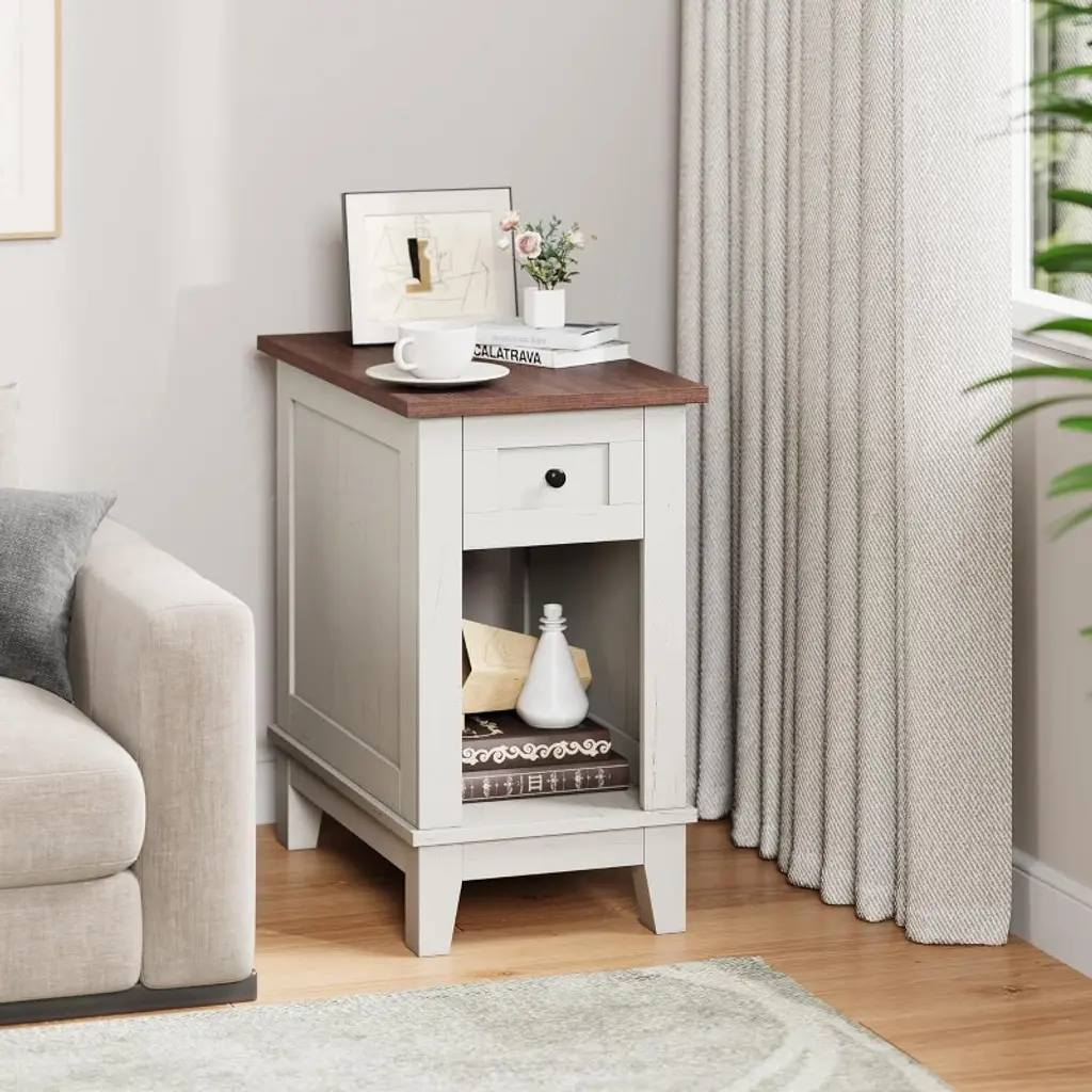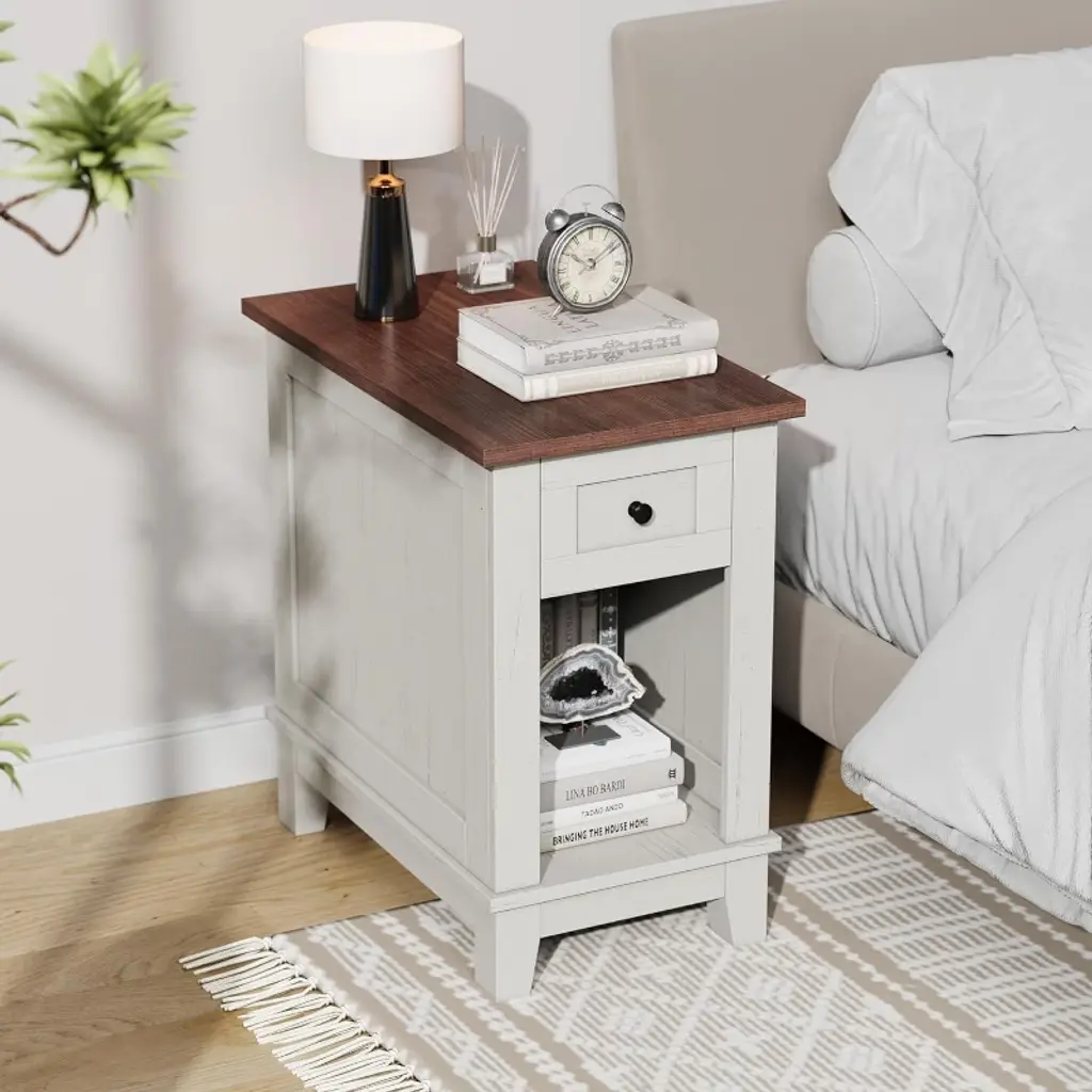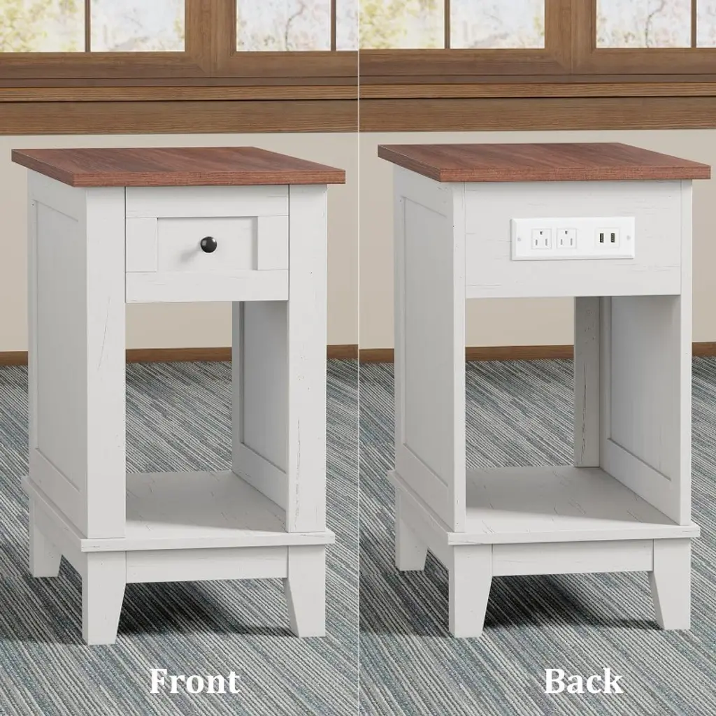 Narrow Side Table With Charging Station Small Farmhouse End Tables Storage Nightstand Bedside Tables Living Room Sofa Table