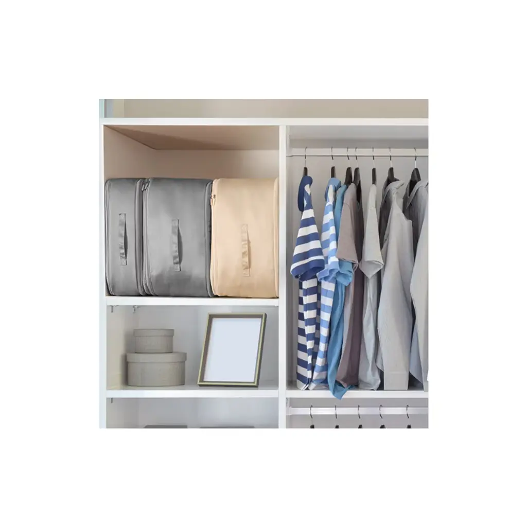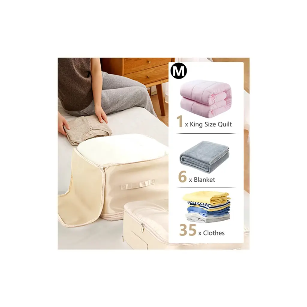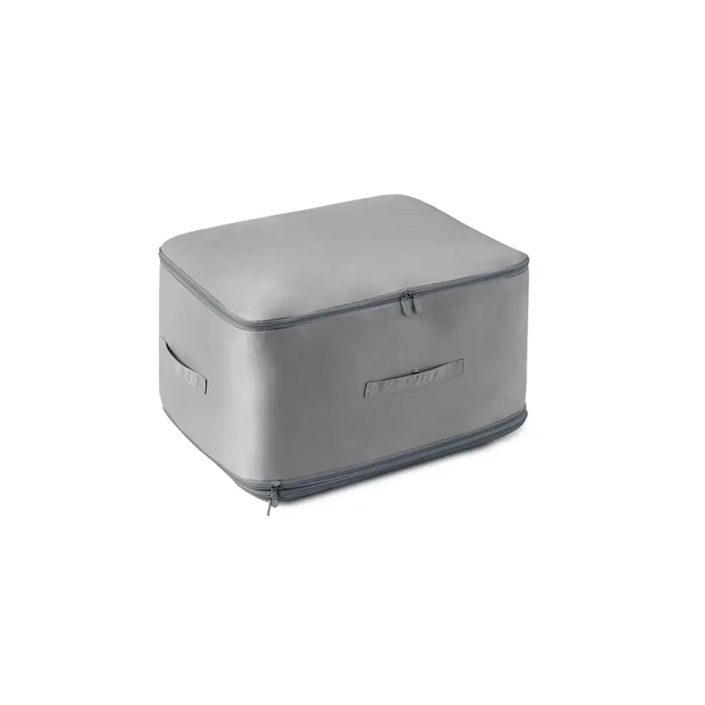 Description: Organize and declutter your home with the Extra-Large Foldable Storage Bag. Available in stylish grey and apricot colors, this versatile bag is designed to store bedding, comforters, pillows, clothes, and more. Choose from M and L sizes to meet your storage needs: the M size is perfect for a single 6lb duvet, while the L size accommodates up to two duvets or other large items. With its innovative self-compression design, you can easily zip up the bag to flatten and save space—no vacuum required. The dual zippers allow for quick access, while the reinforced, double-stitched handles ensure easy portability. Made from durable nylon fabric, this bag is wear-resistant, dustproof, moisture-proof, and waterproof, offering reliable protection for your items. Plus, it’s machine washable, making it simple to maintain. This foldable storage organizer is ideal for closets, storage rooms, or seasonal items, keeping your space tidy and your belongings safe. Specifications: Material: Nylon Color Options: Grey, Apricot Size Options: L (Height: 25-60cm) Machine Washable: Yes L Size Dimensions: 20.47 x 16.53 x 23.62 inches L Size Weight: 0.59 lbs Package Includes: 1 x Compression Storage Bag