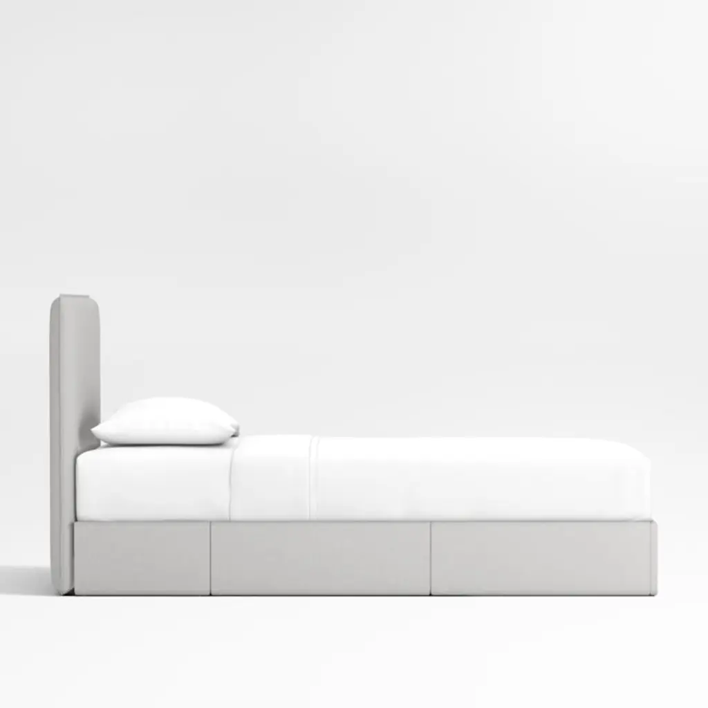 Our Noa Upholstered Storage Bed sets a smart and stylish foundation for a room that can grow with your child. Between its versatile grey color and flange-edge design, the bed has a breezy, timeless sensibility that works with any decor. Two under-bed drawers make it a practical space-saver, while the cushy, softly textured upholstery gives it a cozy feel that kids of all ages will love.