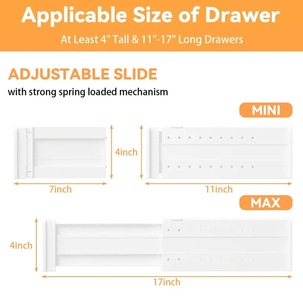 Our drawer divider features a customizable length that extends from 11" to 17", ensuring a perfect fit for any drawer size in your kitchen, bathroom, or closet.