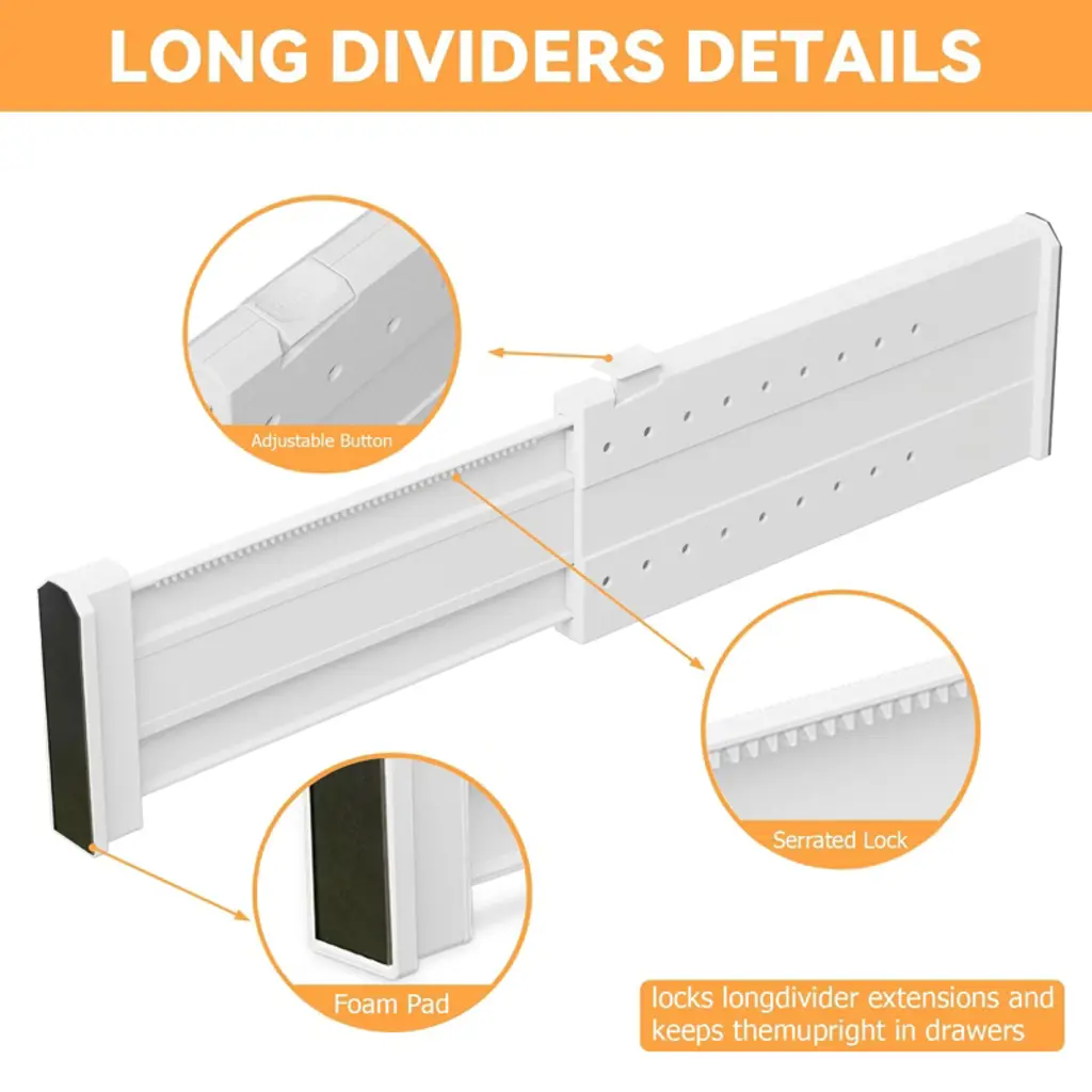 Our drawer divider features a customizable length that extends from 11" to 17", ensuring a perfect fit for any drawer size in your kitchen, bathroom, or closet.