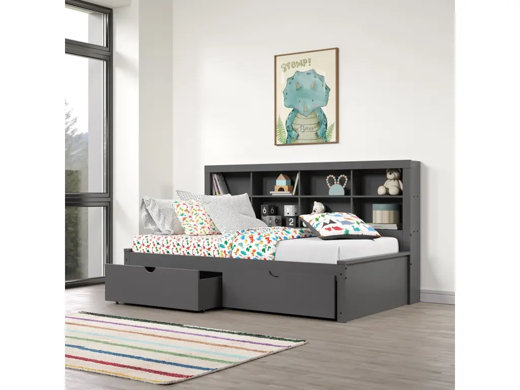 Okak Twin Platform Bed Frame With 6 Drawers Storage Bedroom Furniture For Kids Solid Wood Slats No Box Spring Needed Easy Assembly, Black