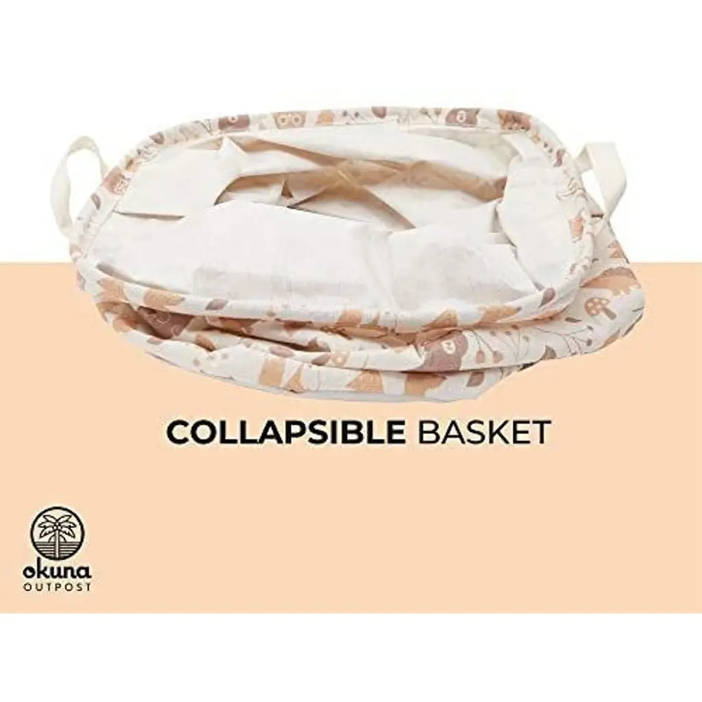 This cute woodland nursery hamper makes the perfect addition to your child's bedroom or playroom. The collapsible canvas basket provides versatile storage for a range of items including towels, clothing, toys, blankets, pillows, and general household items. Place inside the bathroom, laundry room, kitchen, living room, and bedroom for decorative and convenient storage. The hamper measures approximately 15.7 x 19.7 inches and can easily fold for easy storage.