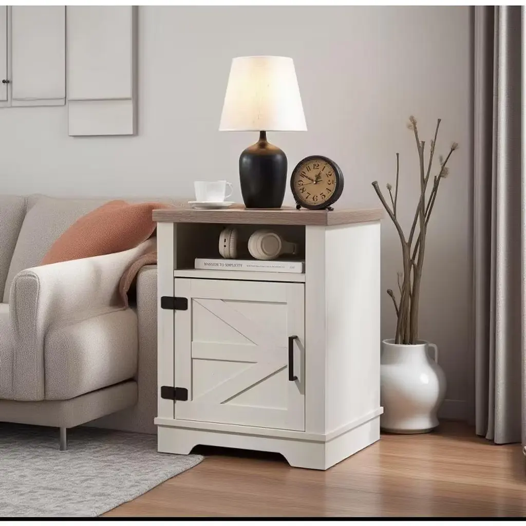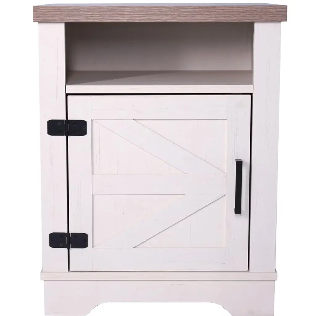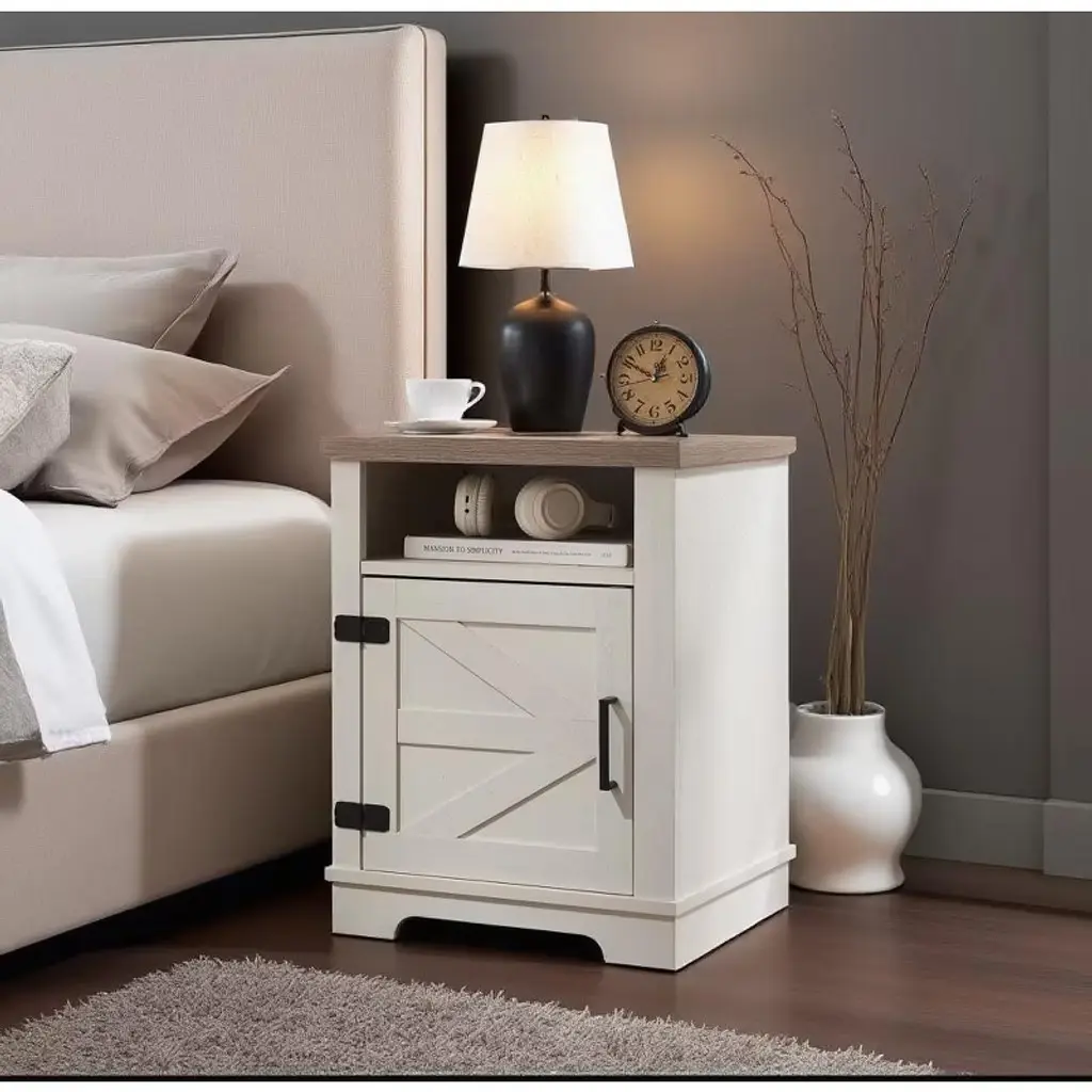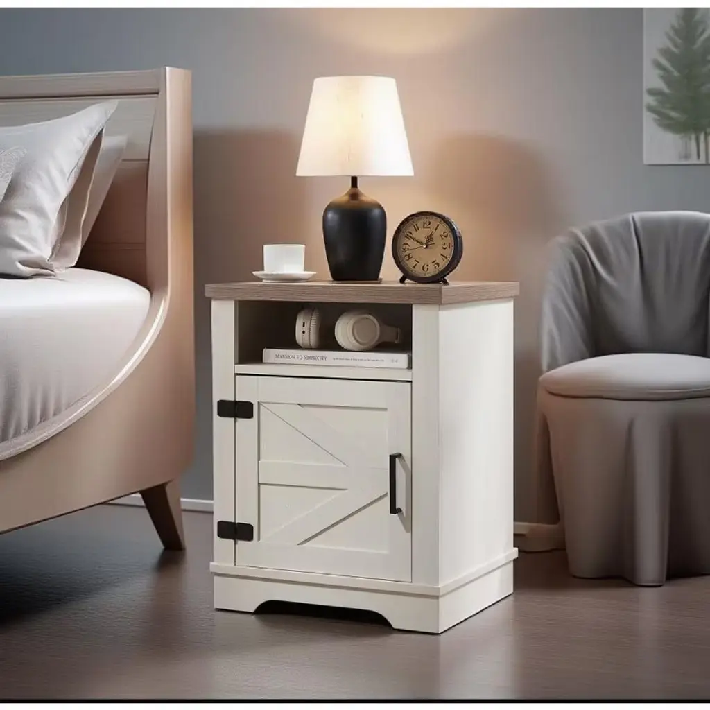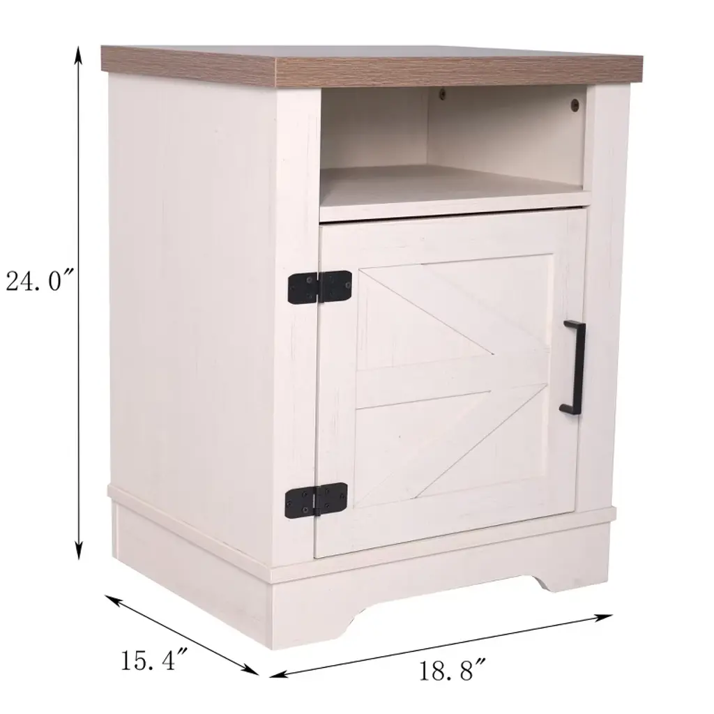 Orrd Farmhouse Nightstand With Barn Door, Modern Bedside Table With Storage For Bedroom & Office