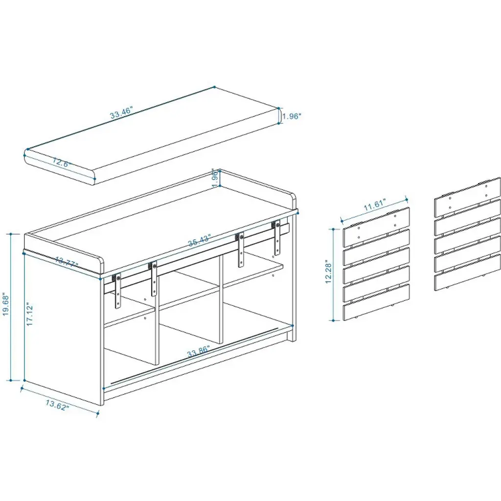 Orrd Modern Shoe Storage Bench, 2-tier Entryway Bench With Sliding Barn Doors & Removable Seat Cushion For Entryway, Hallway, Bedroom, White