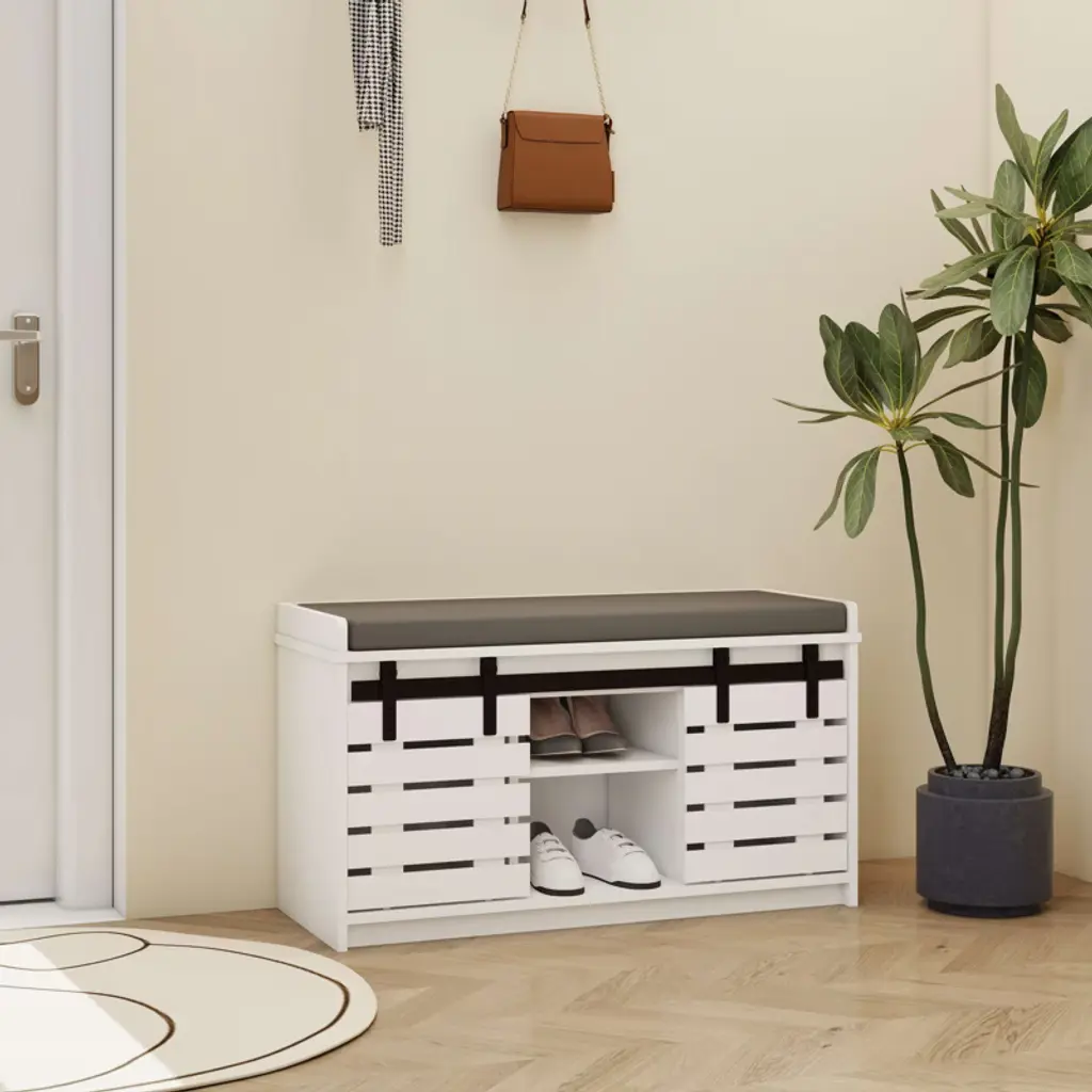 Versatile and Stylish: With its farmhouse style and white finish, this bench shoe storage seamlessly blends in with various settings. Use it in the entryway, front door, hallway, foyer, closet, patio, mudroom, living room, or bedroom, Its versatile design makes it suitable for any space in your home. Sliding Doors and Adjustable Shelves: This entryway shoe storage bench features two sliding doors and two adjustable shelves on both sides, allowing you to customize the height for optimal organization, providing ample space for all your footwear needs.