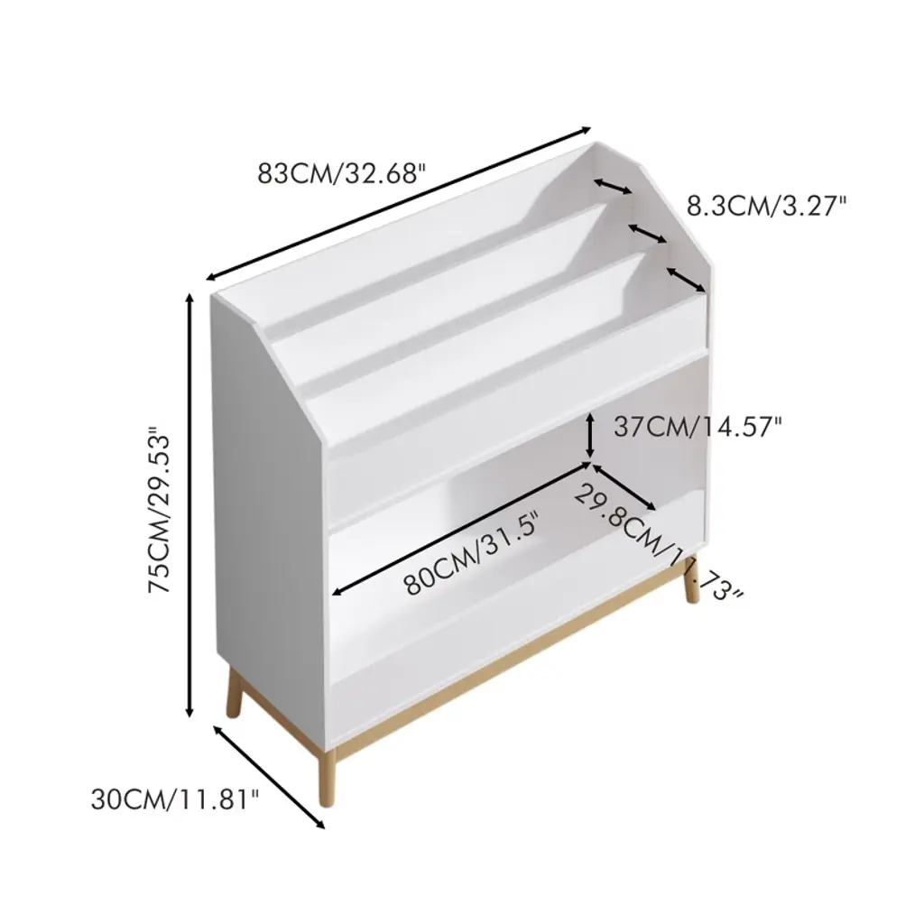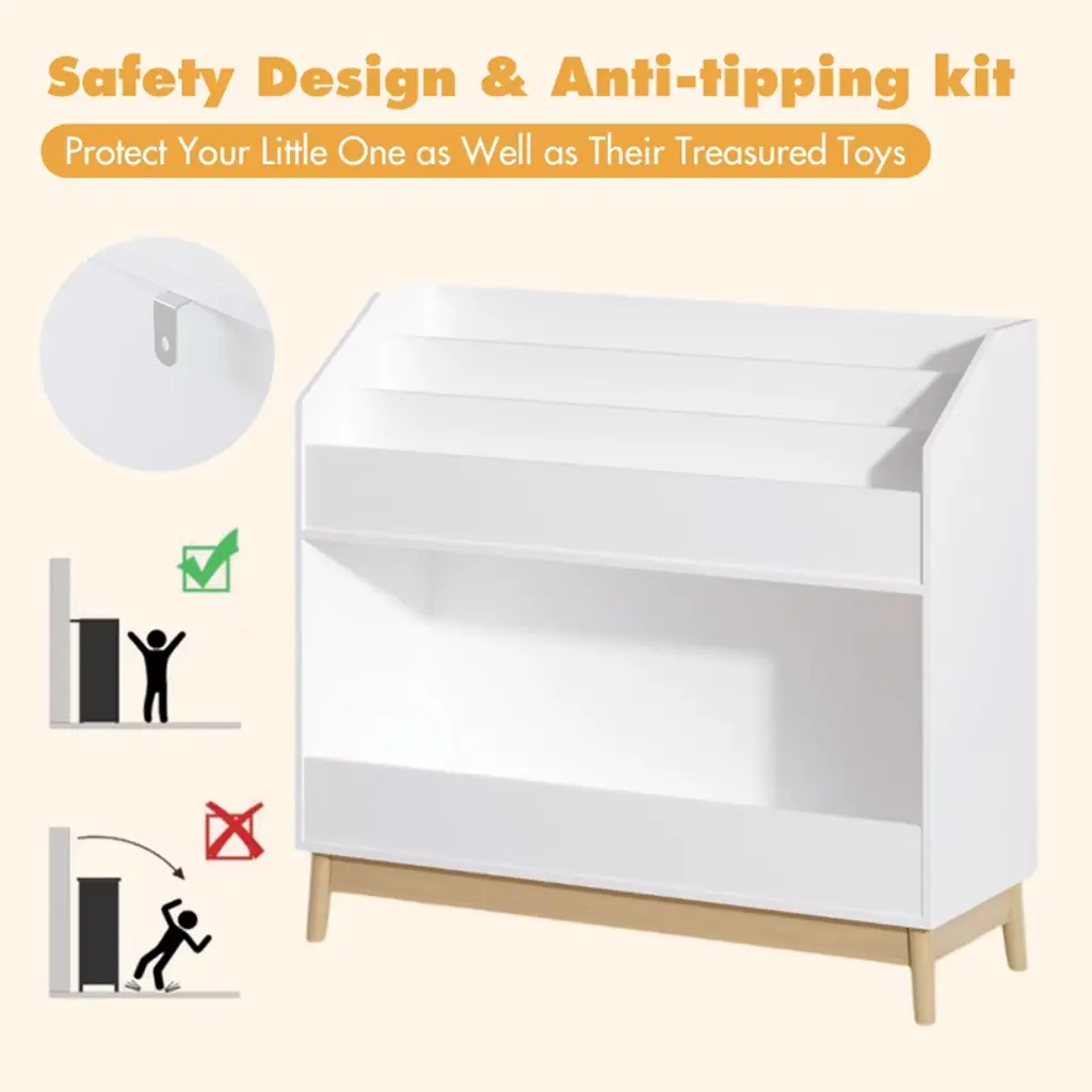 Orrd Toddler Book Display Shelf With Storage, Wooden Kids Bookcase Organizer For Bedroom Or Playroom, White