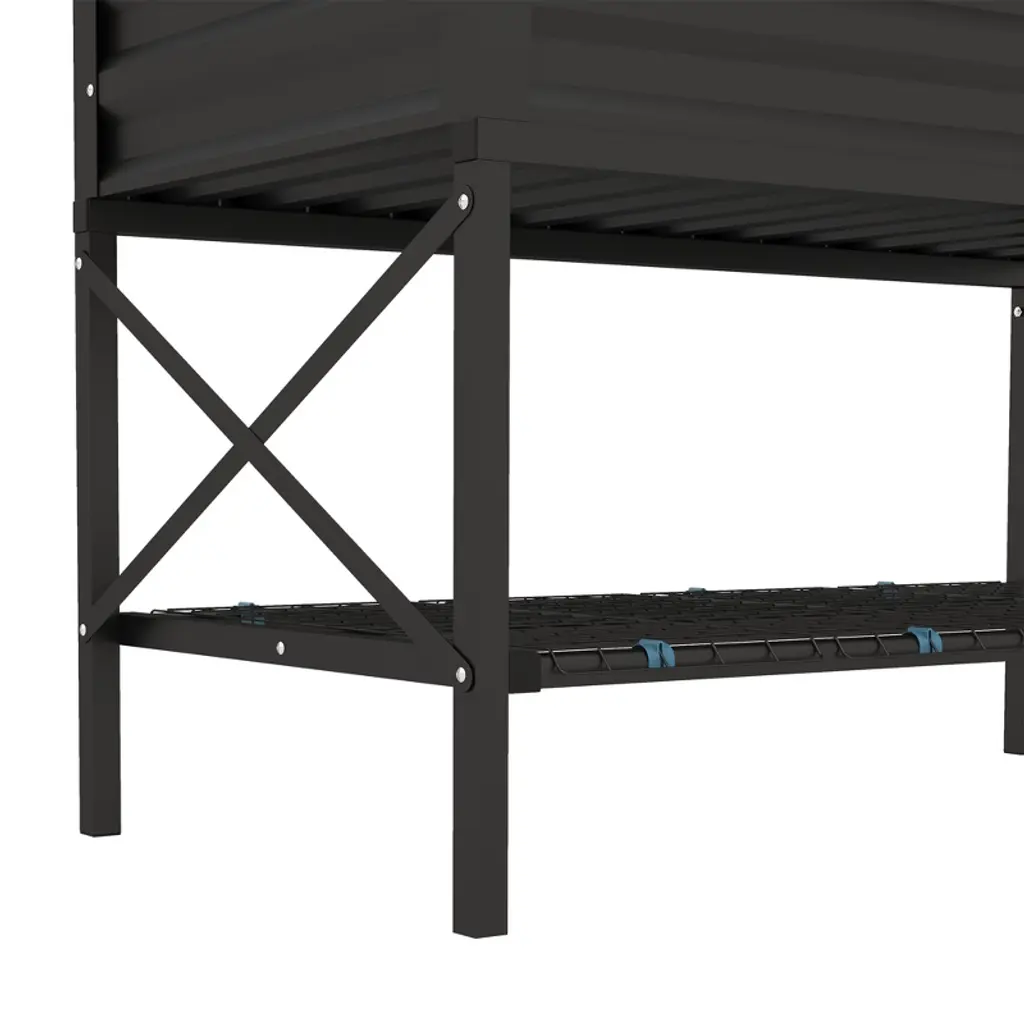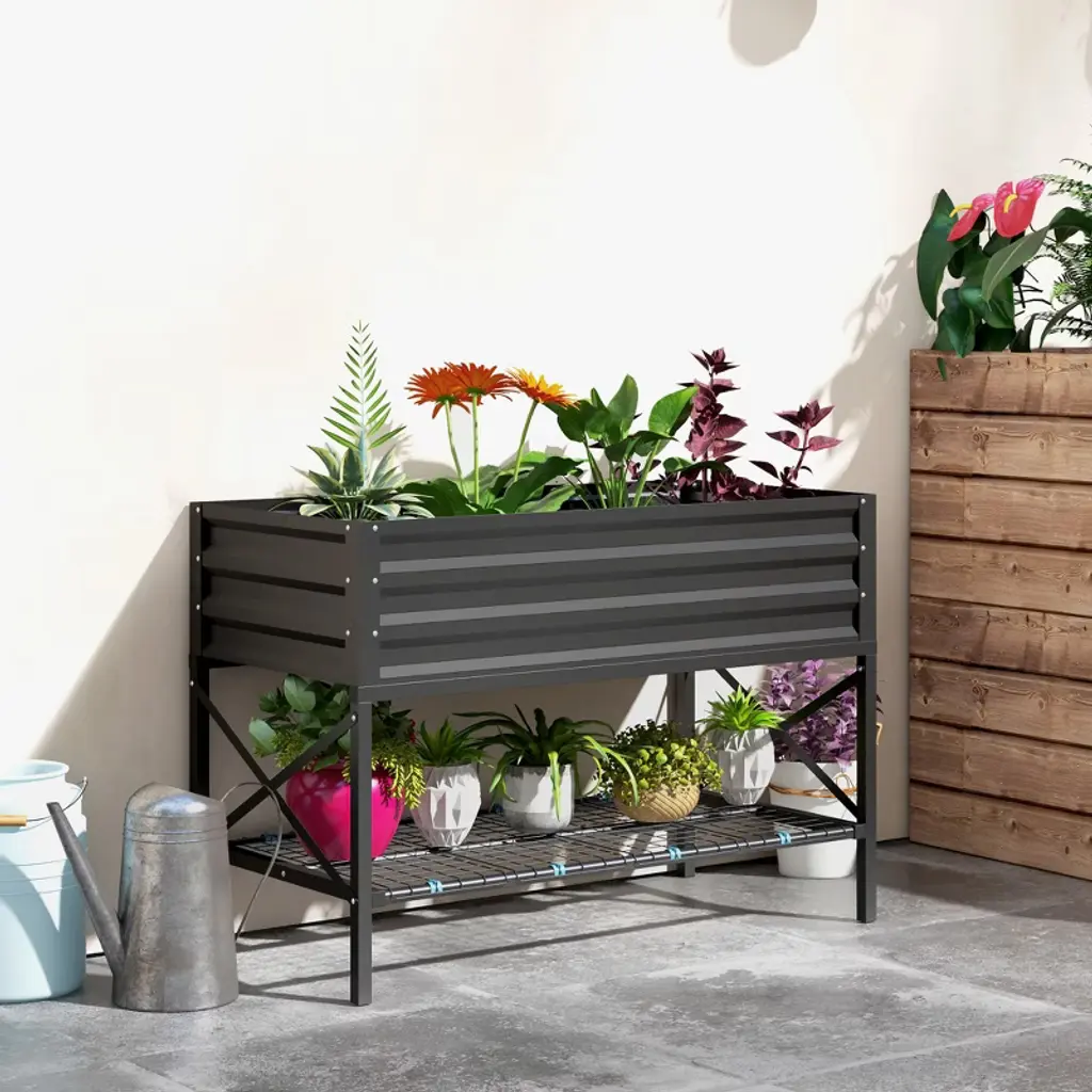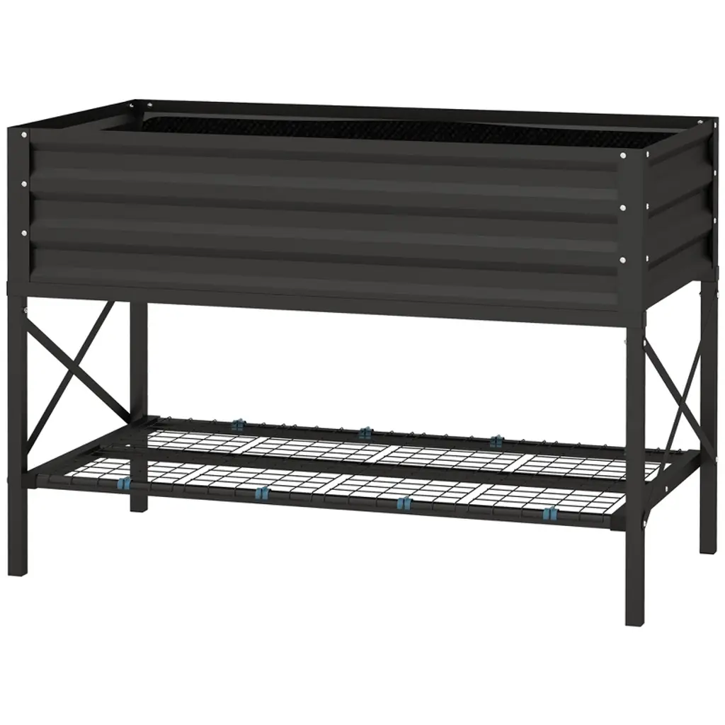Outsunny Galvanized Raised Garden Bed, Metal Planter Box With Legs, Storage Shelf And Bed Liner, Black