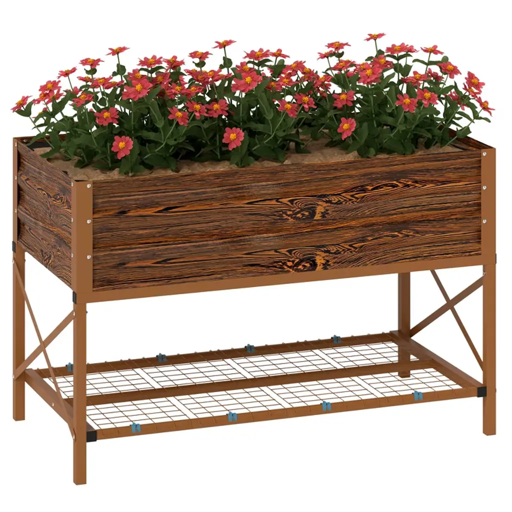 Outsunny Galvanized Raised Garden Bed, Metal Planter Box With Legs, Storage Shelf And Bed Liner, Dark Brown
