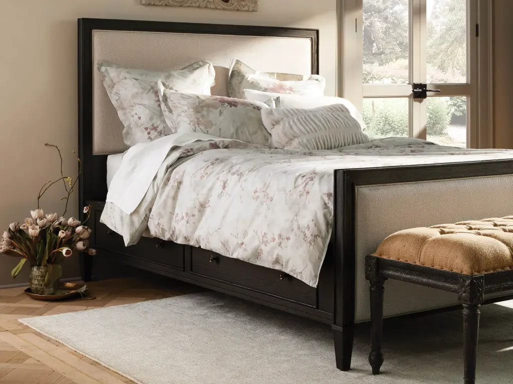 Our Pearson collection enhances your décor with classic design and easily transitions from traditional to modern styles depending on your aesthetic. Handcrafted by Indonesian artisans, Pearson is expertly constructed from sustainably grown mindi wood and mindi veneers for a smooth uniform surface. Simple, sophisticated details like plush upholstered headboards and rich finishes are masterfully applied by hand to add sophisticated style to each piece and complement the mindi wood’s natural beauty.