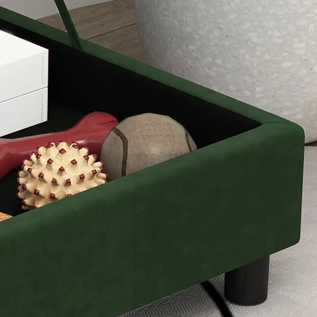 Here's the perfect combination of comfort and style for your pet. This cozy sofa bed features a thick 2-inch cushion made of dense foam, topped with a soft, fuzzy surface for ultimate relaxation. Hidden storage beneath the liftable top offers 23 liters of space for toys, leashes, and more. The modern design, with an arched arm and tufted cushion, adds elegance to any room, while the four legs provide stability and protect against dampness. It's the ideal nap spot for your fur baby. Features: Thick 2-inch Cushion: A thick three inches of densely soft foam offers a comfortable, cushy surface, while a fuzzy feel on the bedding and arm adds to the cozy of the sleep space. Hidden Storage: Save space and store more with a hidden trunk under the liftable top, offering a large capacity of 23 liters to keep anything from toys to dog clothes to leashes. Modern Design: The beautiful, elegant look of this pet sofa bed features an arched arm for your fur baby to cozy up against, and a tufted cushion, providing a charming, modern piece that will upgrade your pup's favorite nap spot, wherever that may be. Four Legs: Provides balance to the structure and protects your friend away from dampness. Thick 2-inch Cushion: A thick three inches of densely soft foam offers a comfortable, cushy surface, while a fuzzy feel on the bedding and arm adds to the cozy of the sleep space. Specifications: Main Color: Green Main Material: Eucalyptus Wood, Flannel, Foam, Polypropylene, Plastic Package includes: 1 * Pet Sofa Bed 1 * Manual Notes: 1.Manual measurement has been used, there may be some reasonable error 2.All the pictures are taken by actual samples, slight chromatic aberration may occur due to lighting or display