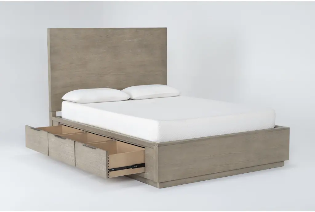 Pierce Natural California King Wood Platform Bed With Side Storage | Drawers