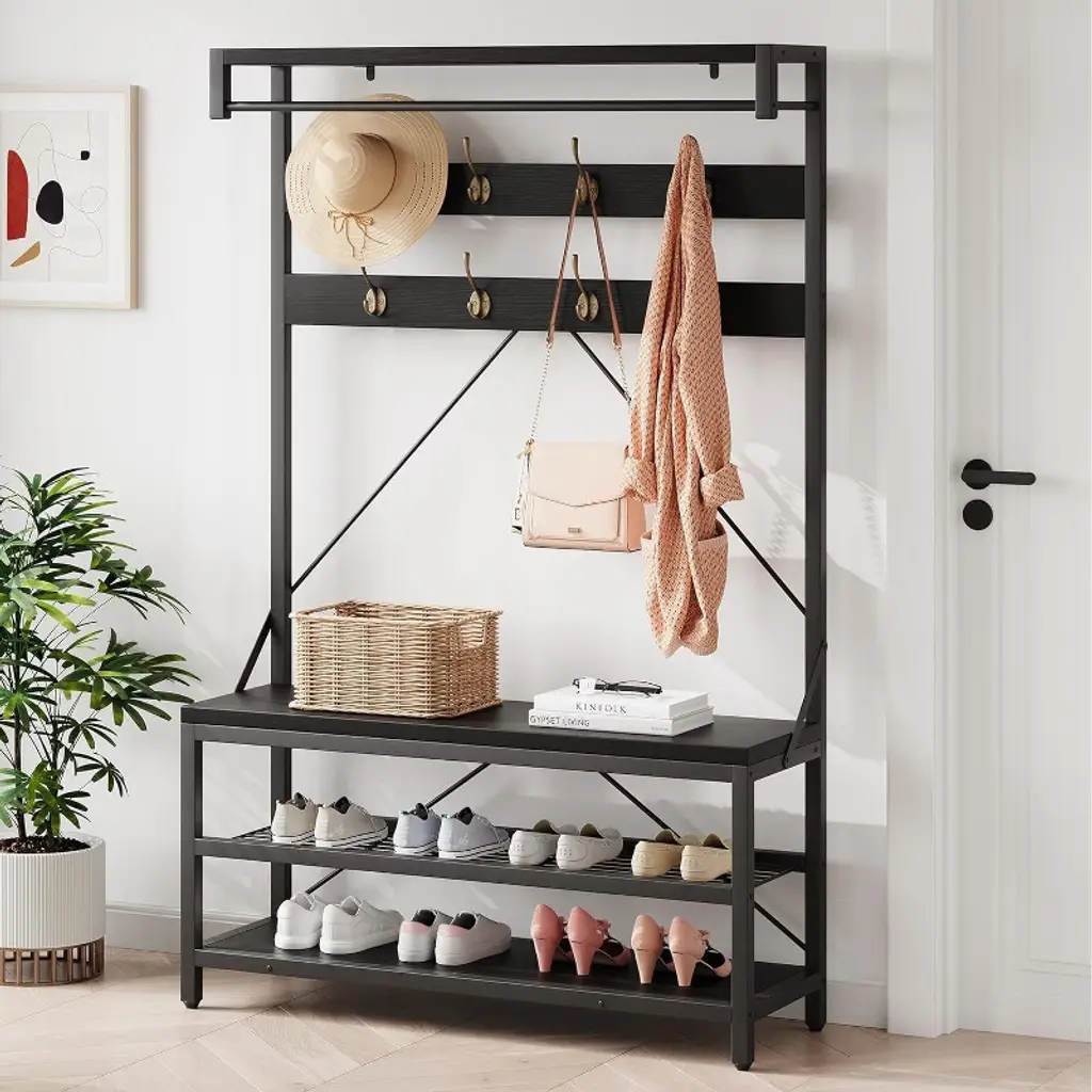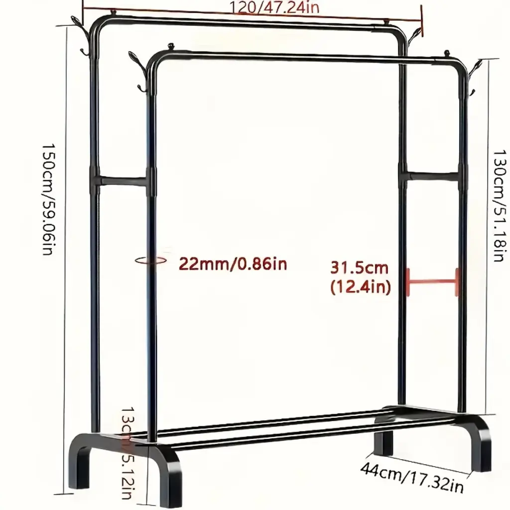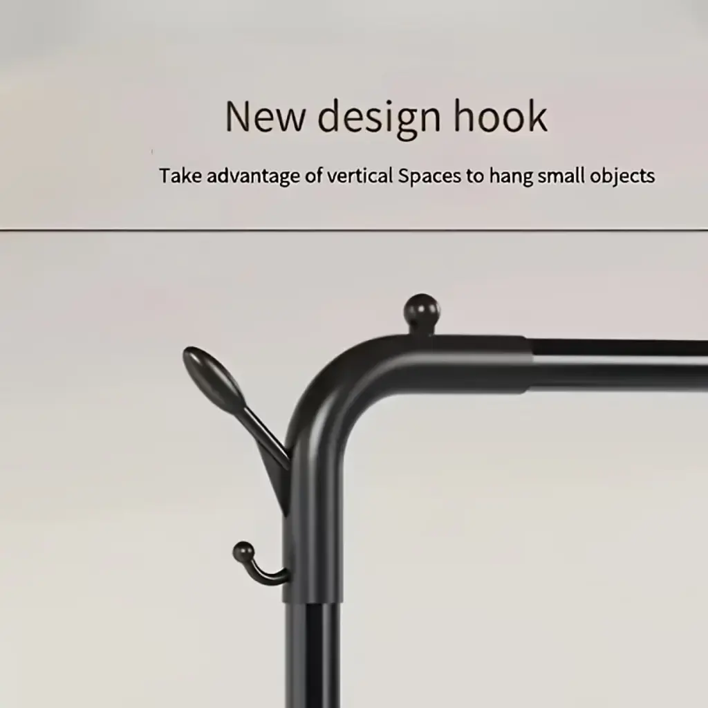 This Floor-Standing Coat Rack redefines multi-functional storage with a robust metal construction, featuring double poles for drying/hanging, double shelves for organized storage, and a versatile design that adapts seamlessly as a balcony storage rack, dressing room organizer, or bedroom clothes holder. Crafted from high-grade steel with a powder-coated finish, the rack balances durability and sleek aesthetics—resisting rust, scratches, and daily wear, making it suitable for both indoor and semi-outdoor use. Its floor-standing structure requires no wall mounting, offering flexible placement wherever extra storage or drying space is needed.