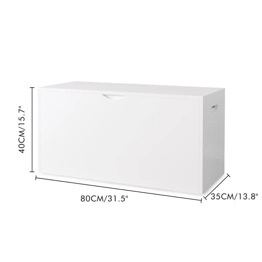 Children¡¯s Toy Chest with Pull-Out Drawer and Wheels ¨C Wooden Storage Box for Toys, Books, and Games Large Wooden Toy Chest: Spacious toy box that is 31.5¡± wide is the perfect organizational solution for keeping playrooms, nurseries, and bedrooms tidy and organized. On trend, modern finishes make this a great addition to any room. Premium MDF Construction:Crafted from durable MDF board, this toy storage chest offers a smooth finish, excellent stability, and long-lasting durability. Unlike solid wood, MDF is resistant to warping and cracking, providing a cost-effective yet high-quality solution for daily use in kids¡¯ spaces. Spacious 5-Cubic Feet of Storage: With almost 5 cubic feet of storage, this toy box measures 31.5"L x 13.8"W x15.7"H when assembled.