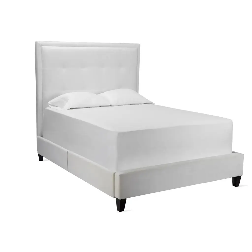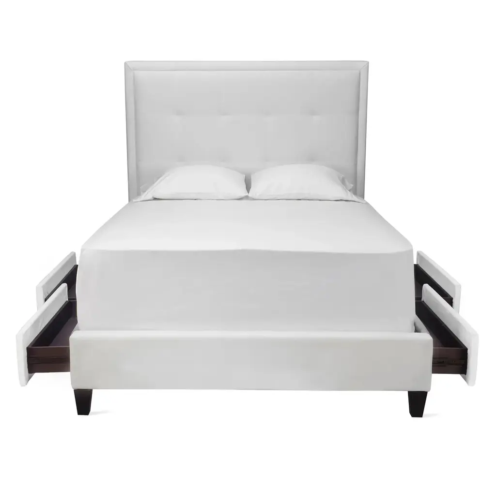 Classic styling has been updated with storage. Riley brings gracious charm to any bedroom with a bright, crisp frame resting on contrasting legs. Shown in Bella Velvet White.Queen: 64''W x 91''D x 64.5''HEastern King: 80''W x 91''D x 64.5''HCal King: 76''W x 95''D x 64.5''HExclusive to Z Gallerie.Custom Orders: Custom Furniture is manufactured especially for you, which is why we do not accept cancellations, exchanges, or returns.