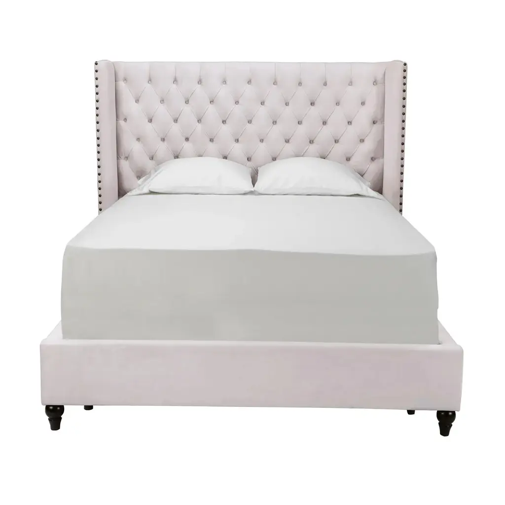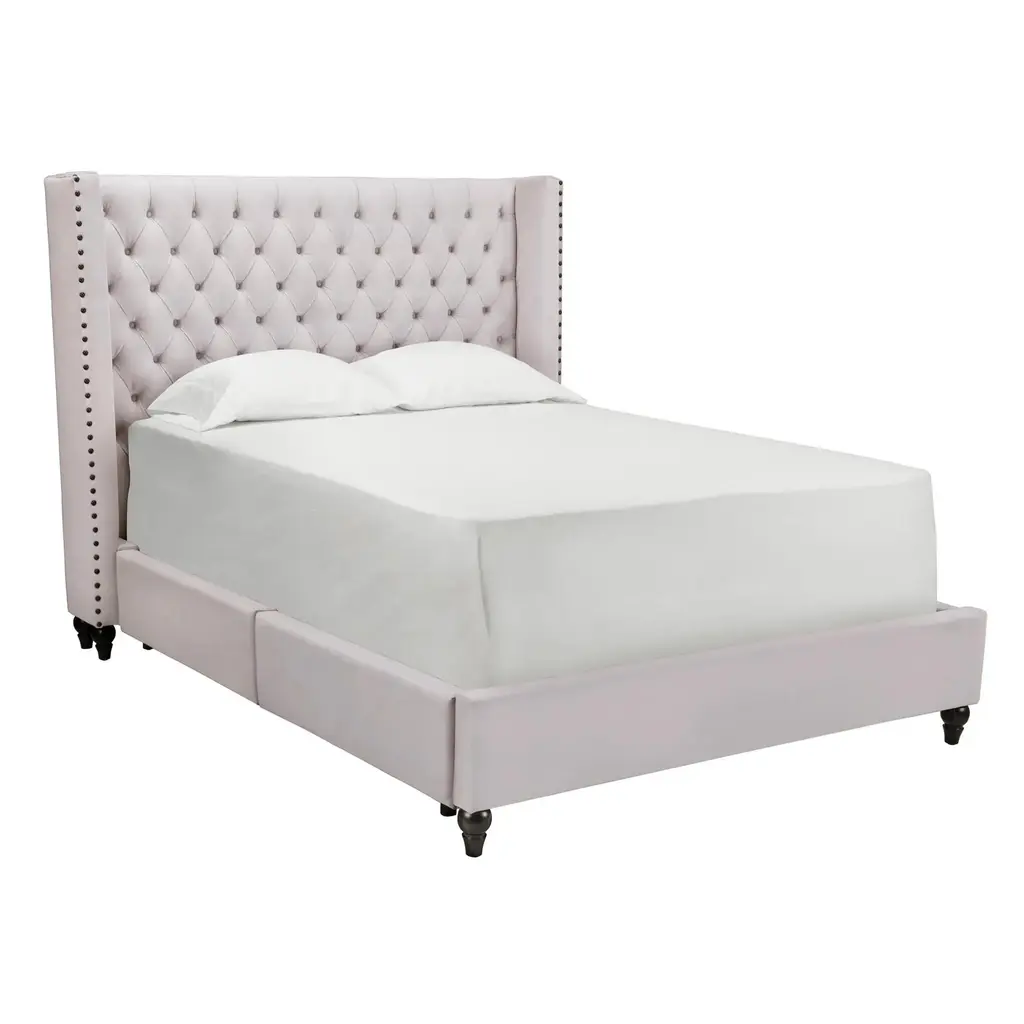 With clean-lined framework, lavish diamond tufting, and graceful turned legs, the pieces in our Roberto Collection deliver stately elegance to any interior. Kiln-dried hardwood frames and plush foam-and-fiber fill ensure long-lasting comfort and support, while hand-applied nailheads along tonal French tape trim finishes the look in high style. Shown in Bella Velvet Pearl with antique brass nailheads.Exclusive to Z Gallerie.Customize it! Available in over 20 fabrics. Custom Orders: Custom Furniture is manufactured especially for you, which is why we do not accept cancellations, exchanges, or returns.